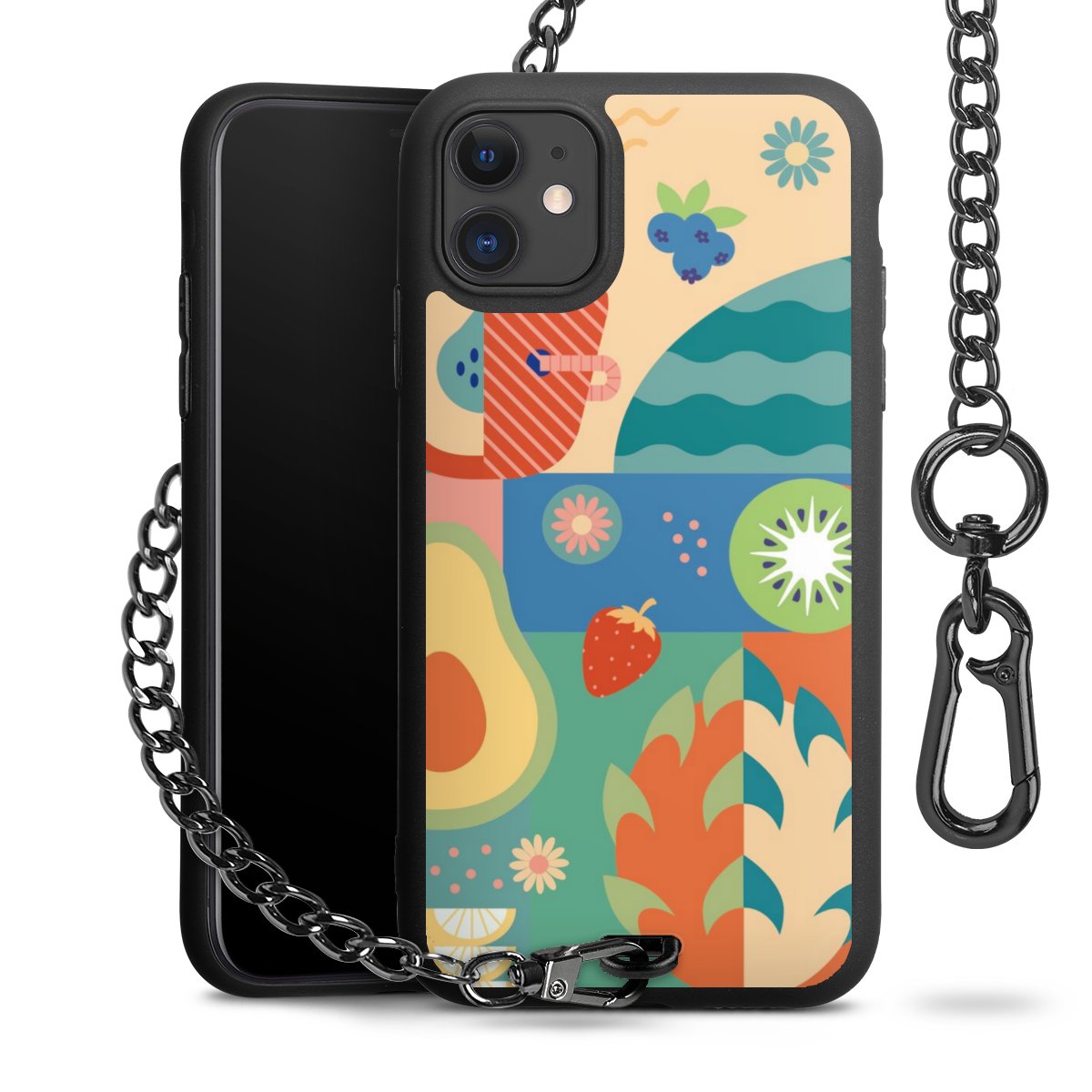 - Mattschwarze Handyhülle mit Metallkette