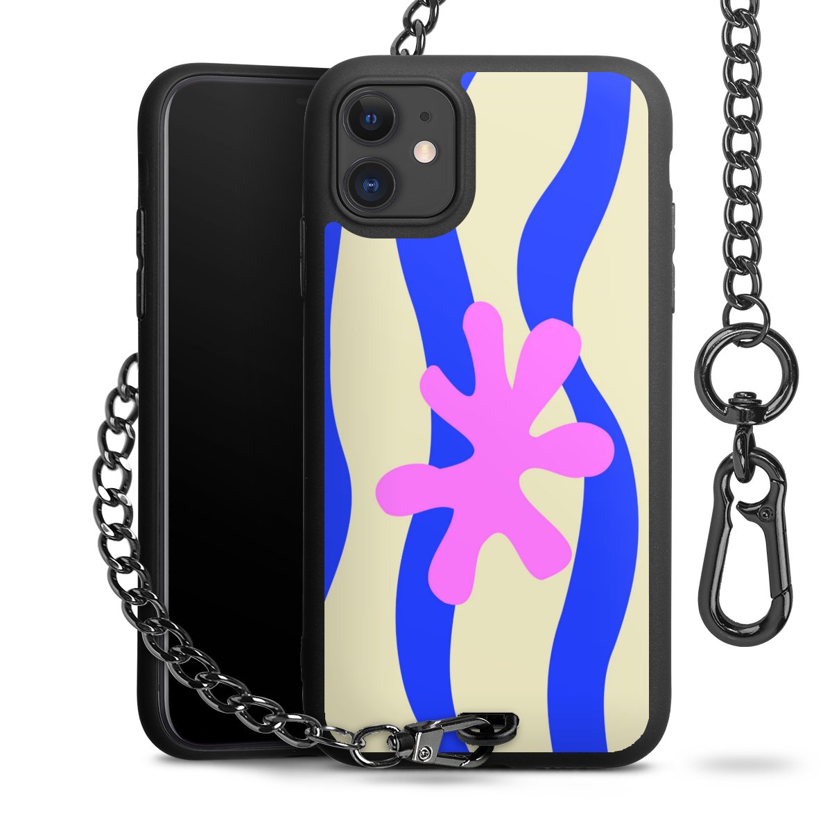 - Mattschwarze Handyhülle mit Metallkette