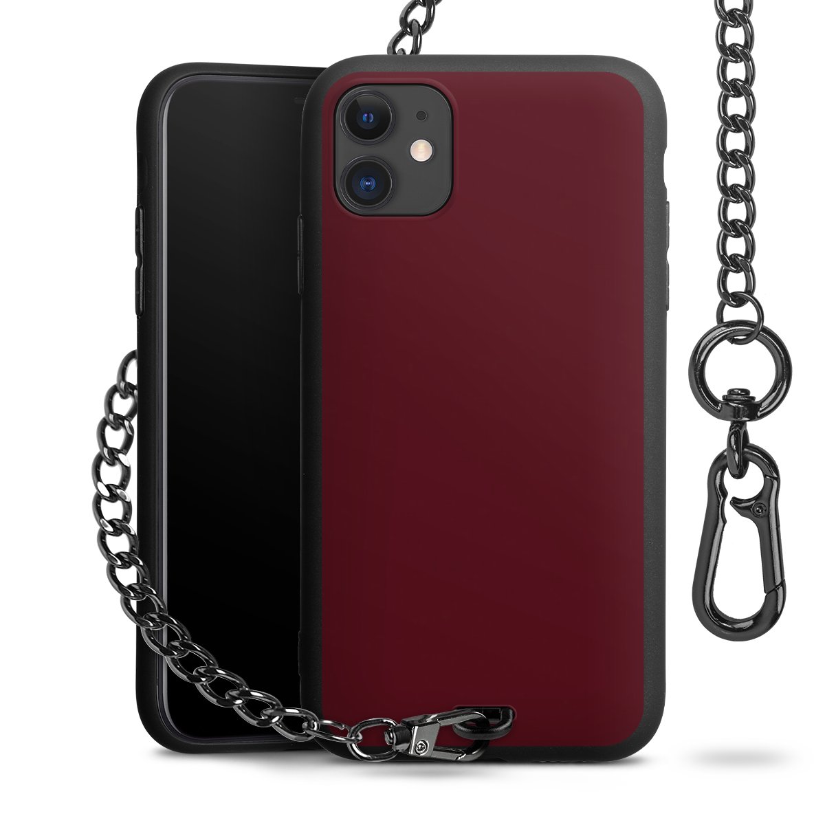 - Mattschwarze Handyhülle mit Metallkette