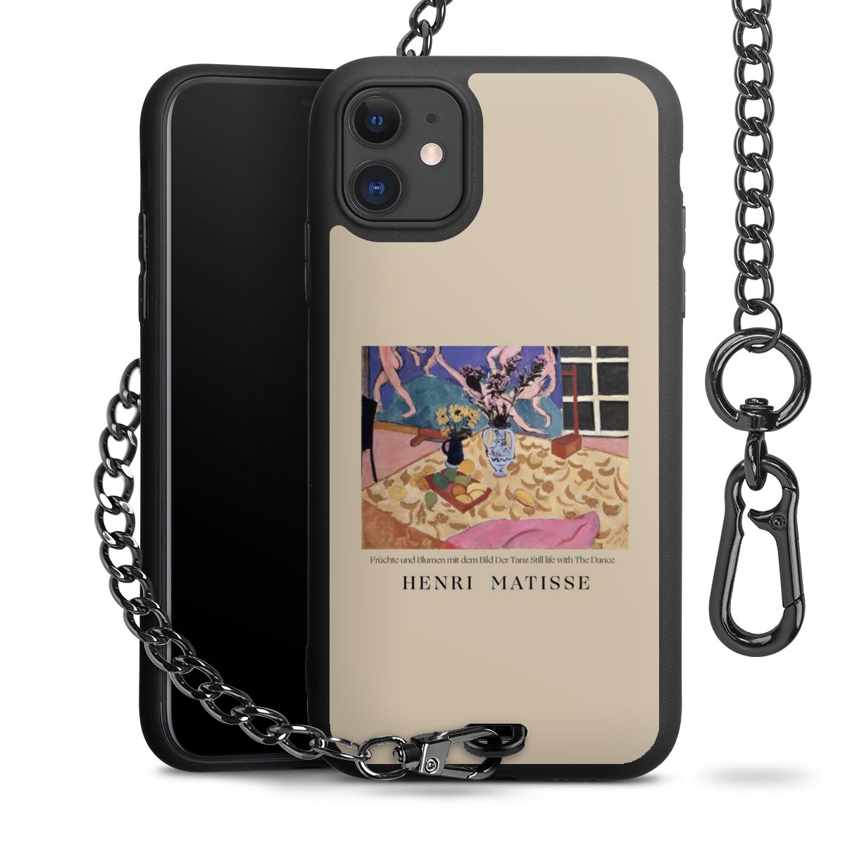 - Mattschwarze Handyhülle mit Metallkette