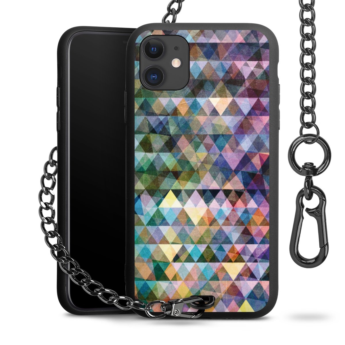 • Mattschwarze Handyhülle mit Metallkette