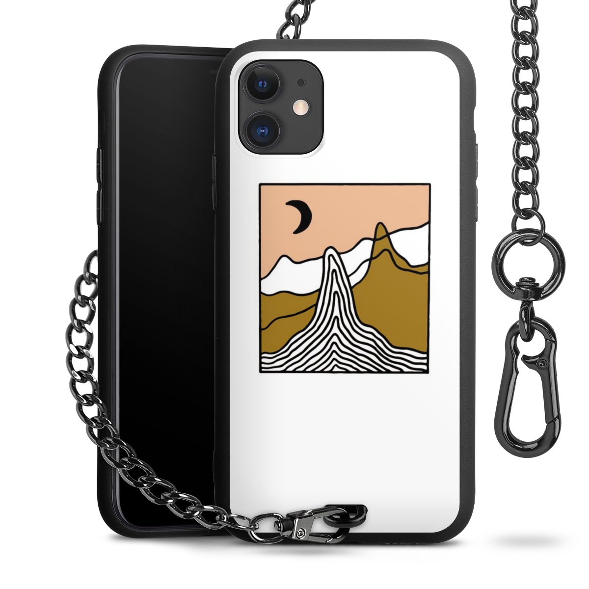 - Mattschwarze Handyhülle mit Metallkette