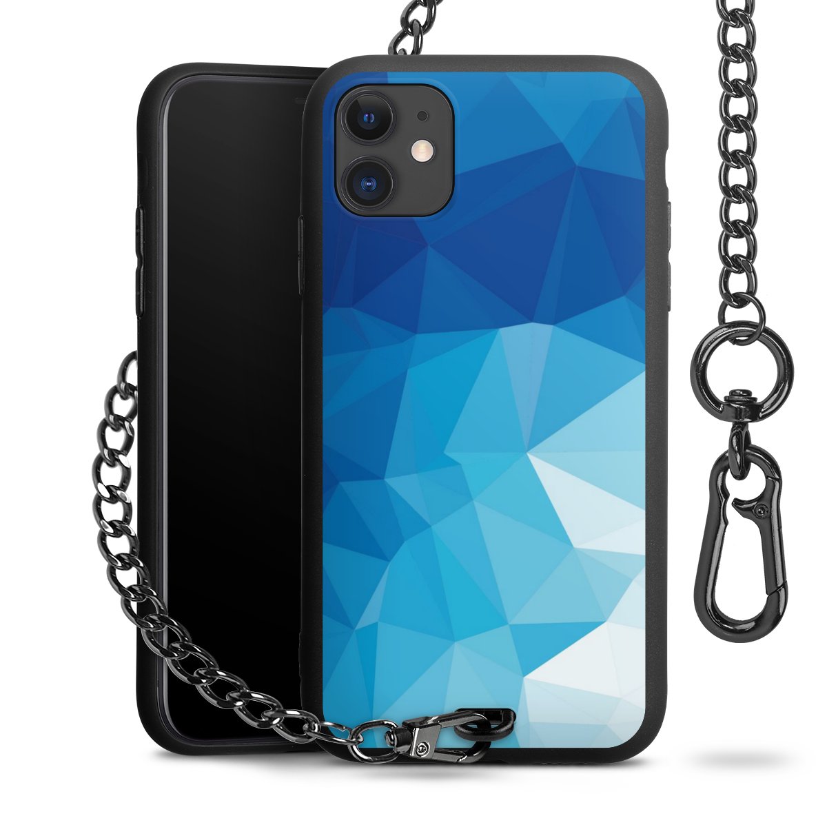- Mattschwarze Handyhülle mit Metallkette