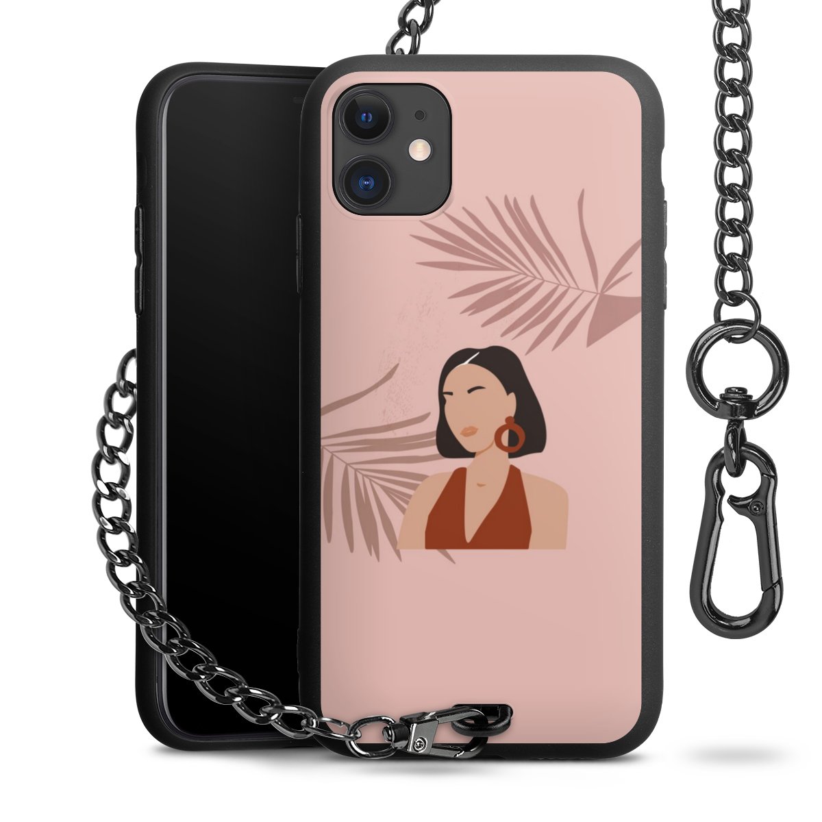 - Mattschwarze Handyhülle mit Metallkette