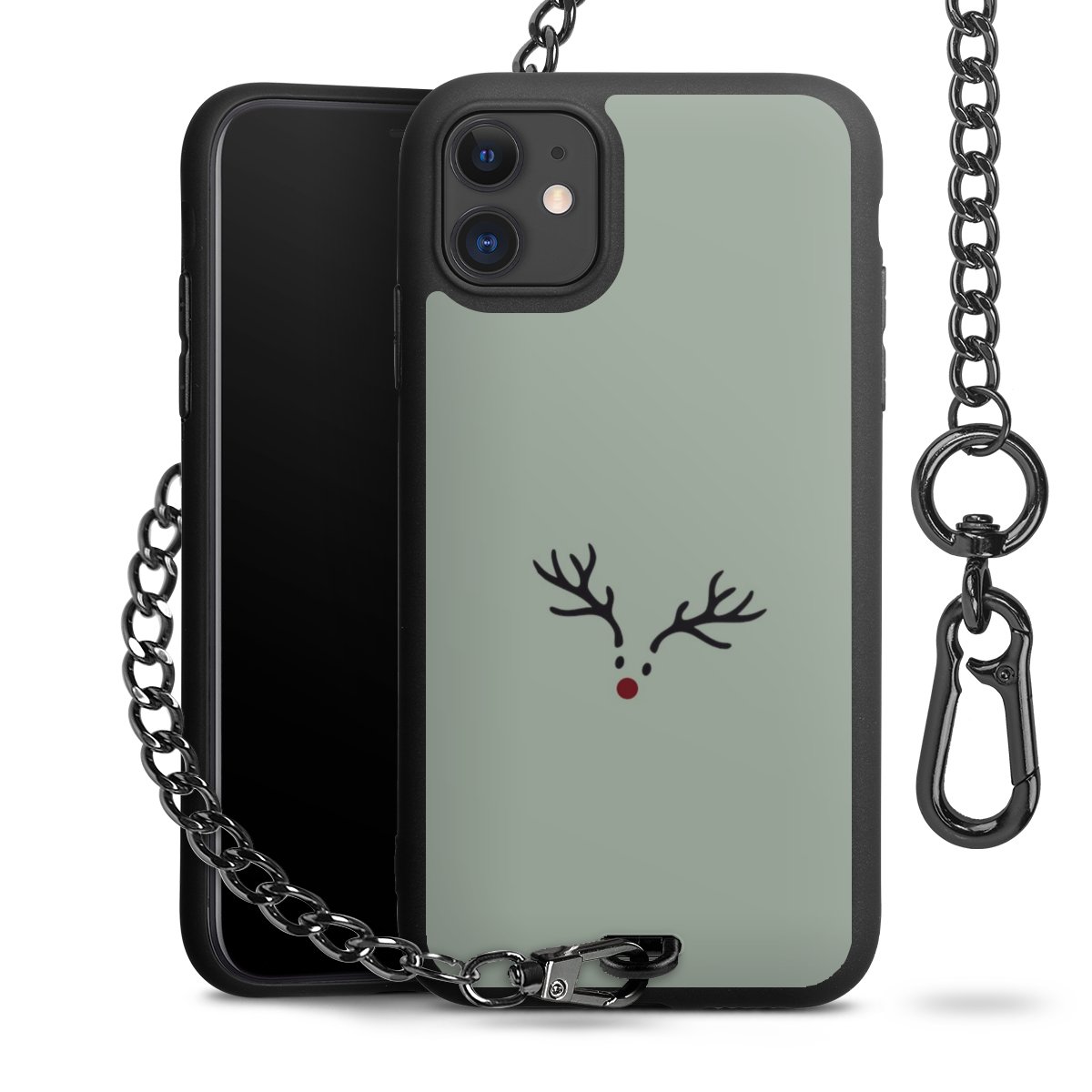 - Mattschwarze Handyhülle mit Metallkette