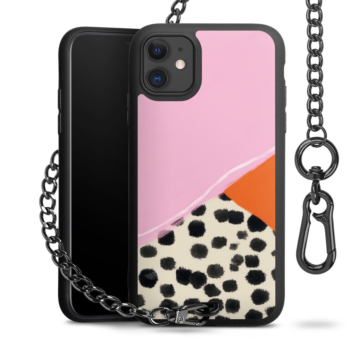 • Mattschwarze Handyhülle mit Metallkette