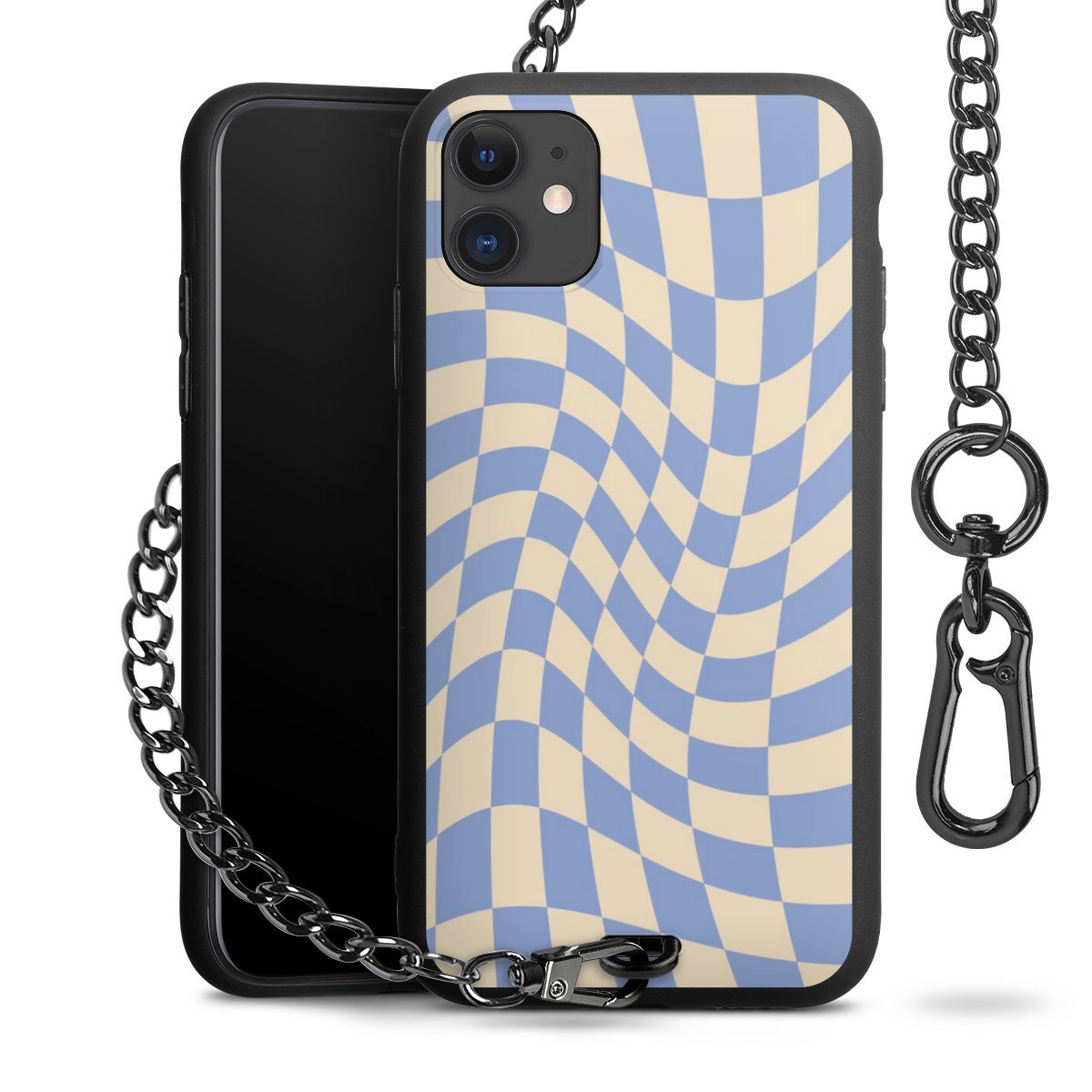- Mattschwarze Handyhülle mit Metallkette