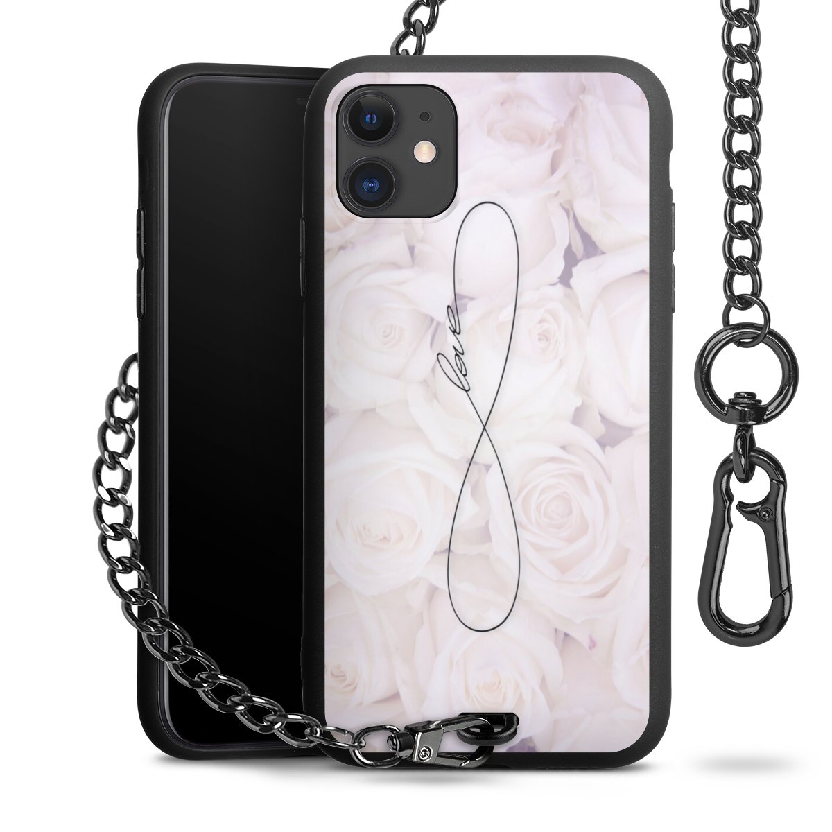 - Mattschwarze Handyhülle mit Metallkette