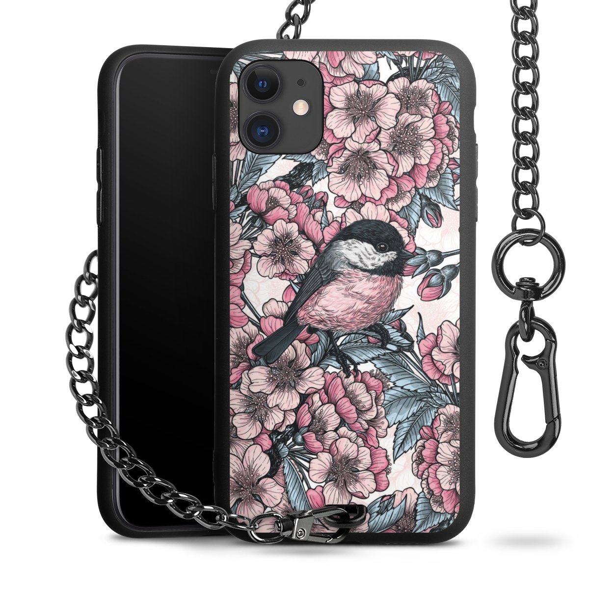 • Mattschwarze Handyhülle mit Metallkette