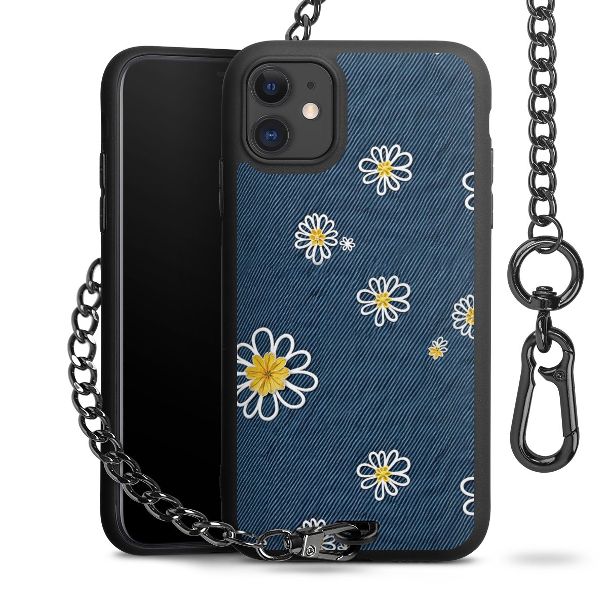 - Mattschwarze Handyhülle mit Metallkette
