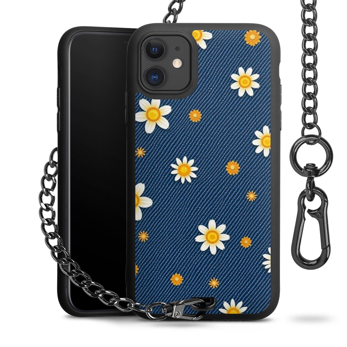 - Mattschwarze Handyhülle mit Metallkette