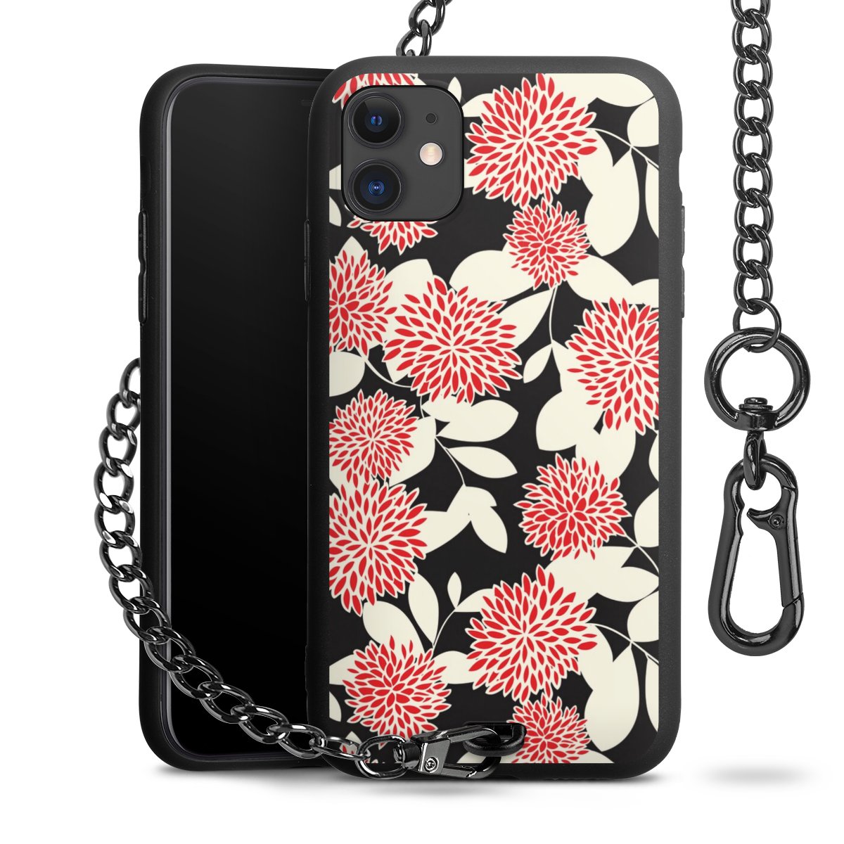 - Mattschwarze Handyhülle mit Metallkette