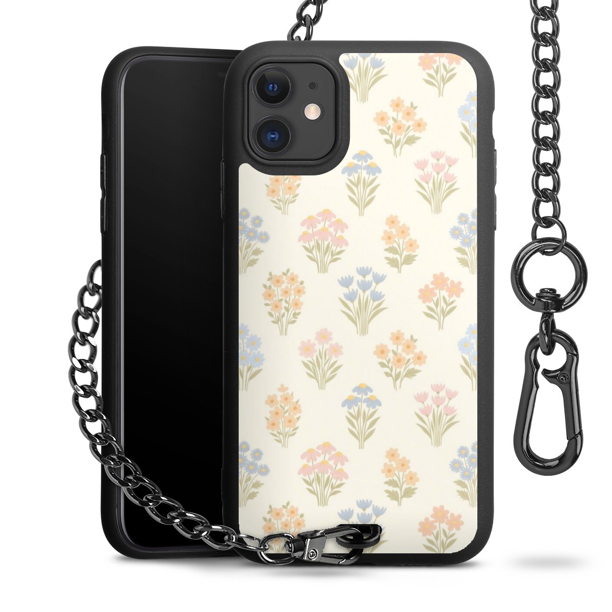 • Mattschwarze Handyhülle mit Metallkette