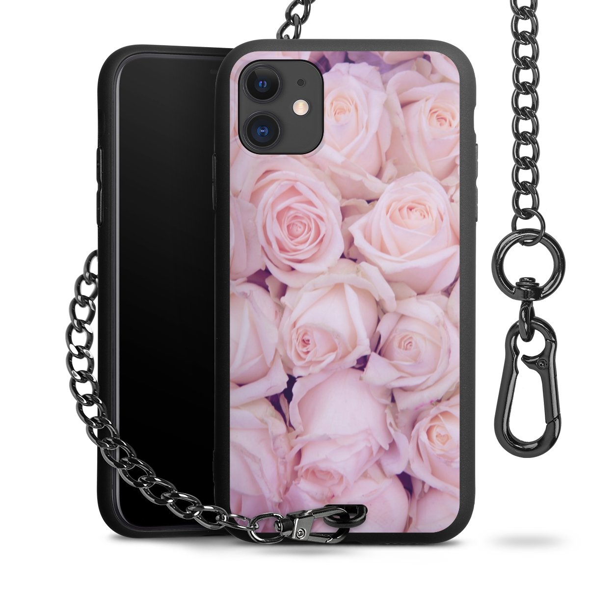 - Mattschwarze Handyhülle mit Metallkette