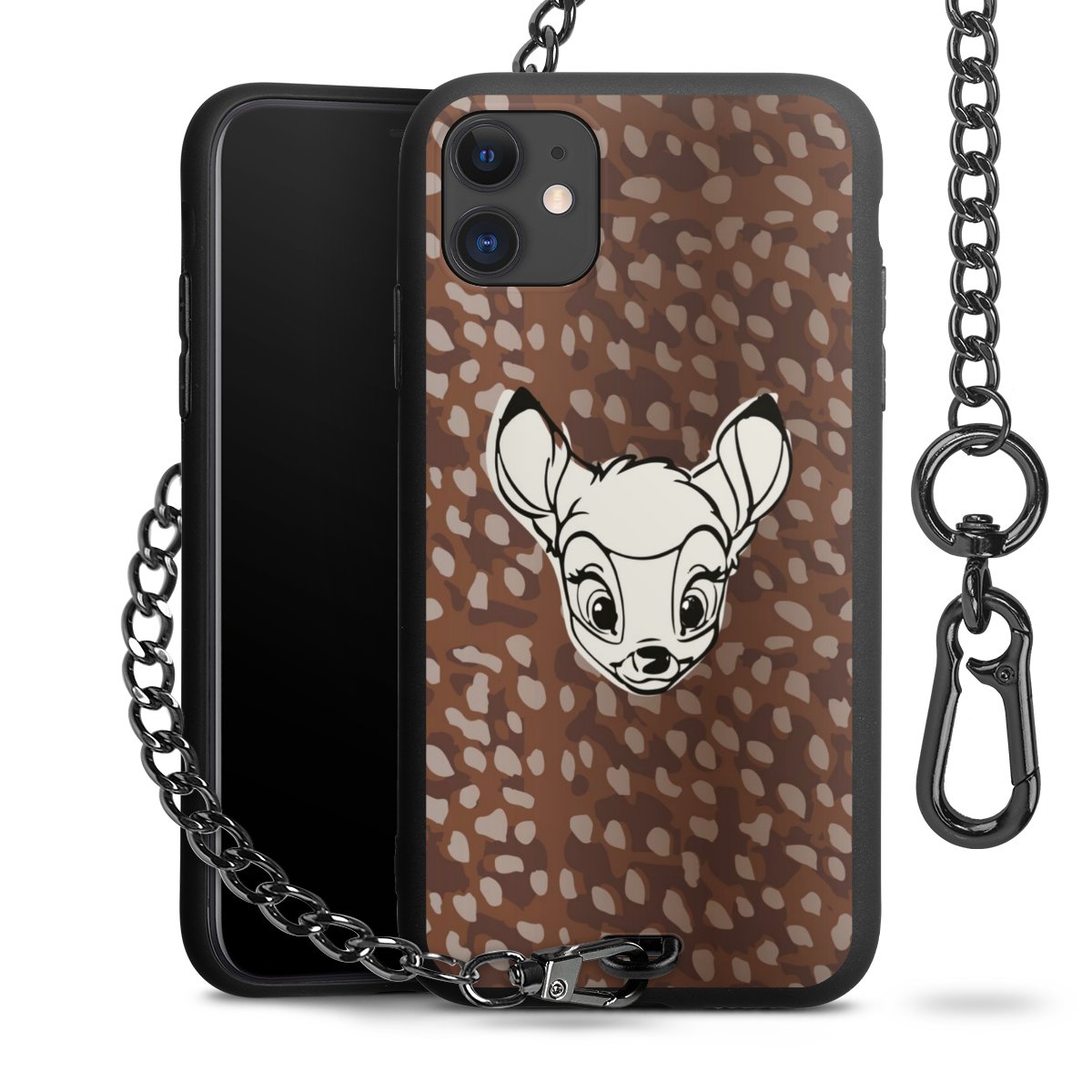 • Mattschwarze Handyhülle mit Metallkette