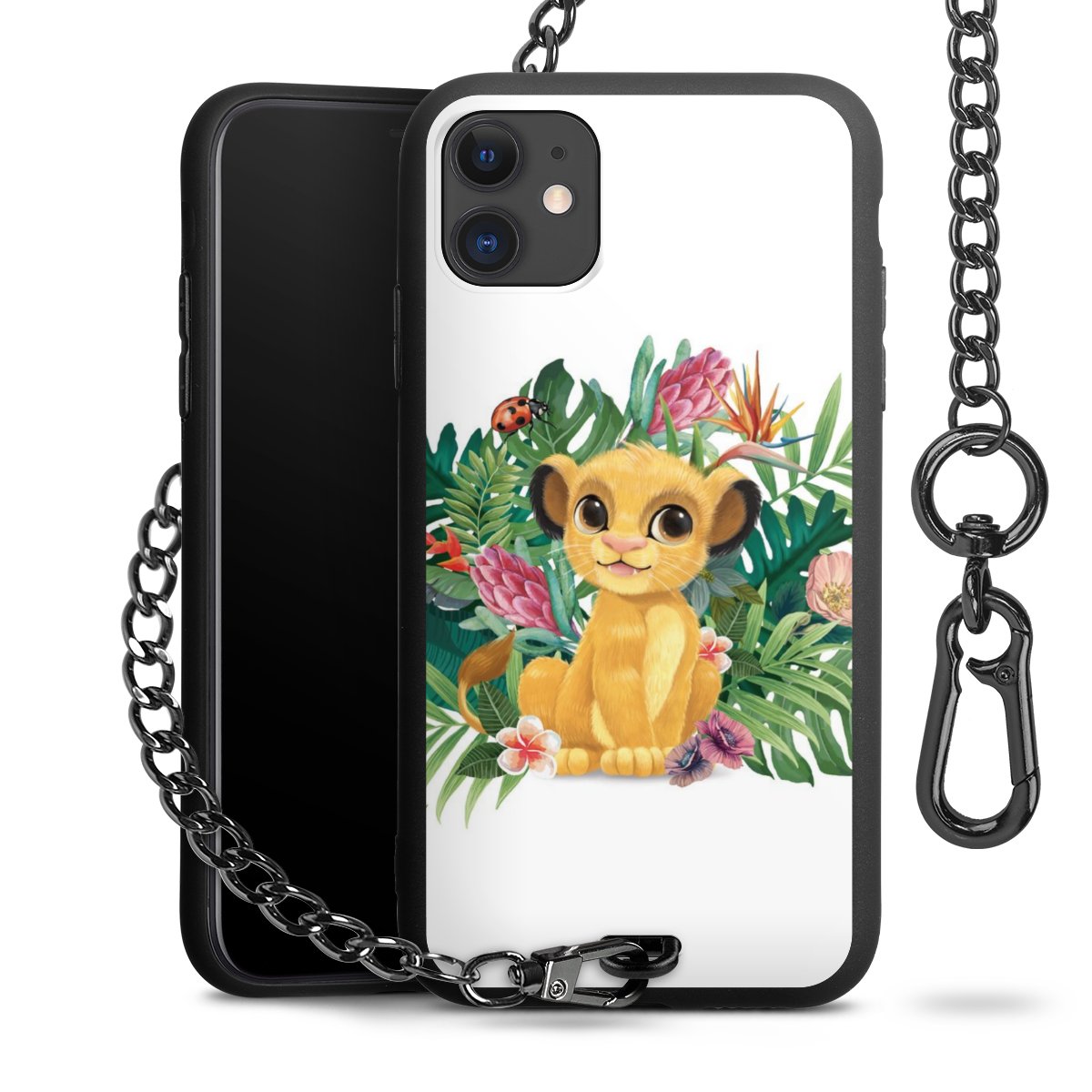 Die Handyhülle verfügt über eine mittig am unteren Rand platzierte Öse, an der die Metallkette stabil befestigt ist. Bestelle die Hülle einfach für Dein Smartphone-Modell, dann passt sie wie angegossen und Du brauchst sie bloß einmal anzudrücken. Handy in die Tasche, Karabiner an den Hosenbund – schon kann die Party starten.