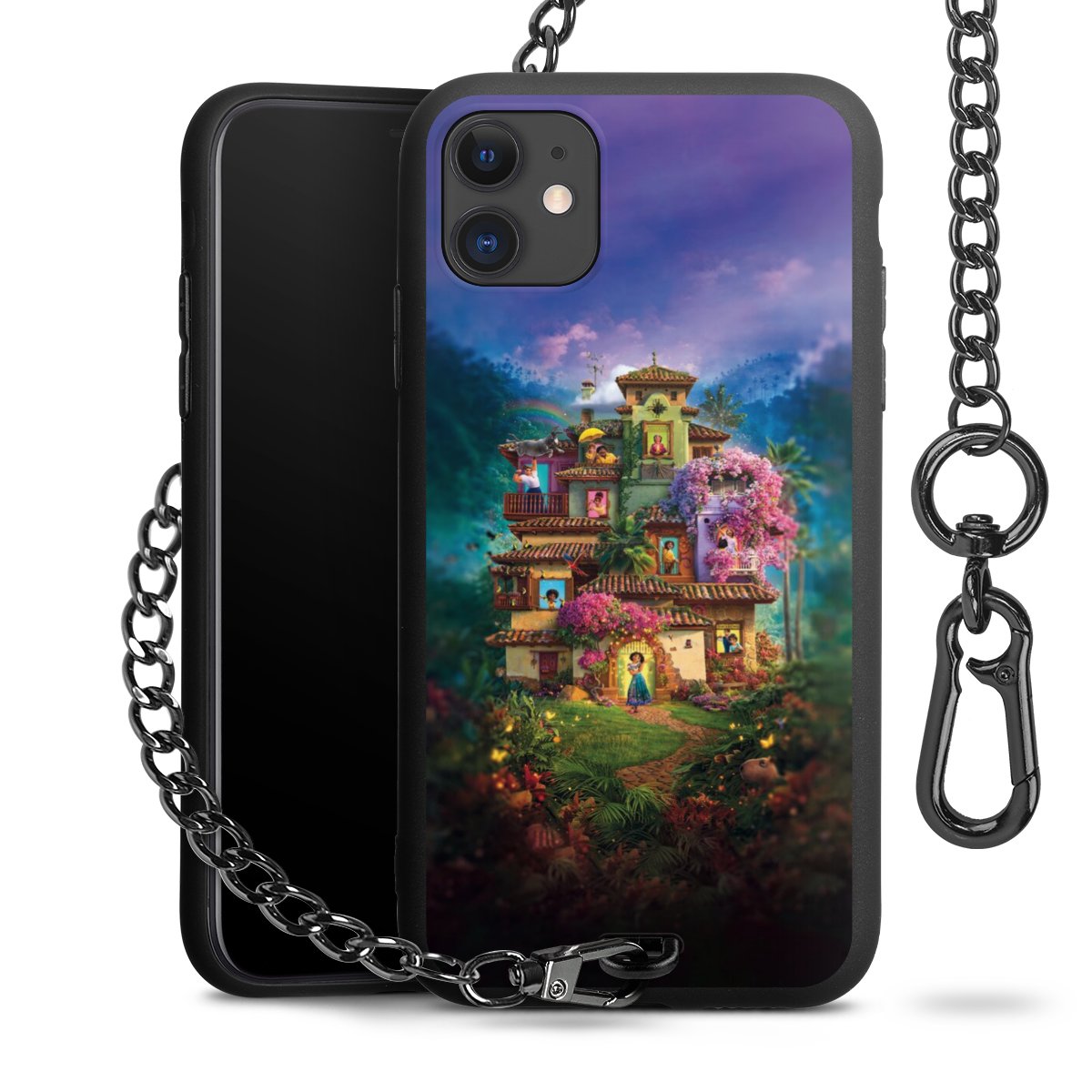 • Mattschwarze Handyhülle mit Metallkette