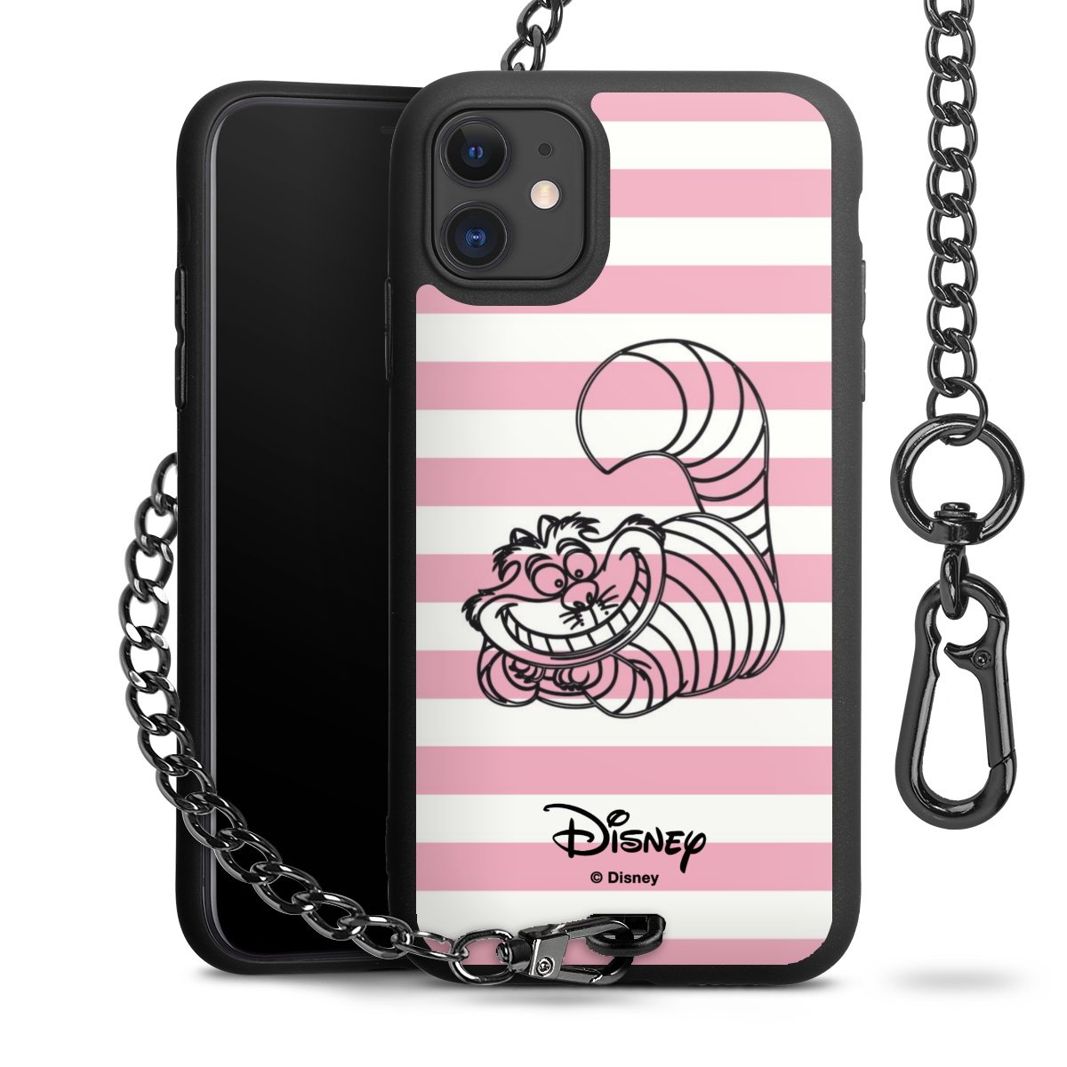 Die mattschwarze Silikon-Handyhülle besteht aus robustem TPU (thermoplastisches Polyurethan). Sie ist flexibel und schützt Dein Smartphone vor Stößen und Kratzern. Die Kette sowie der Karabinerhaken sind aus Metall in Gunmetal-Optik gefertigt. Für dieses Produkt kommen ausschließlich TÜV-geprüfte Materialien zum Einsatz.