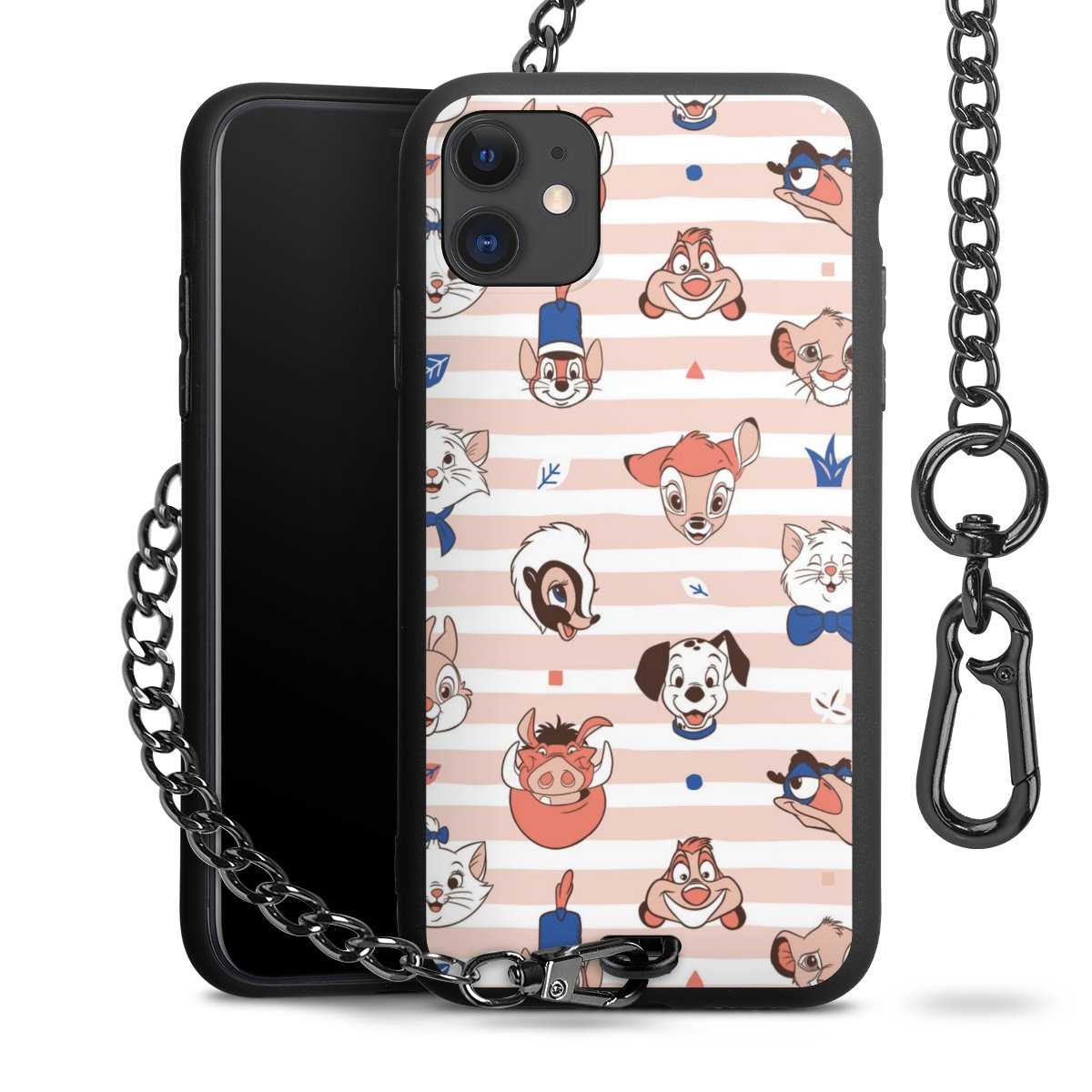 Die Handyhülle verfügt über eine mittig am unteren Rand platzierte Öse, an der die Metallkette stabil befestigt ist. Bestelle die Hülle einfach für Dein Smartphone-Modell, dann passt sie wie angegossen und Du brauchst sie bloß einmal anzudrücken. Handy in die Tasche, Karabiner an den Hosenbund – schon kann die Party starten.