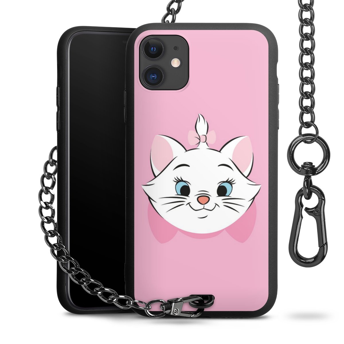 • Mattschwarze Handyhülle mit Metallkette