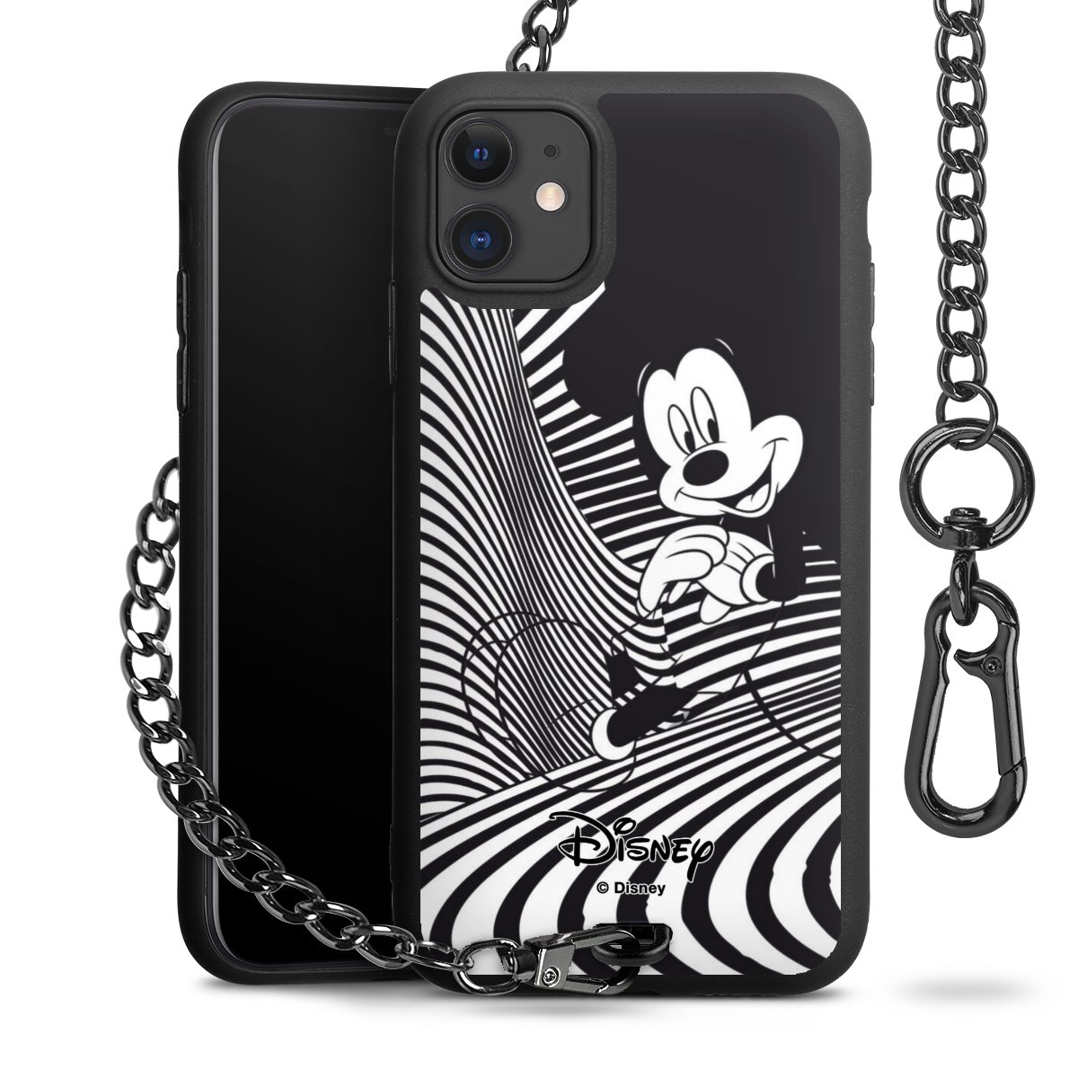 • Mattschwarze Handyhülle mit Metallkette