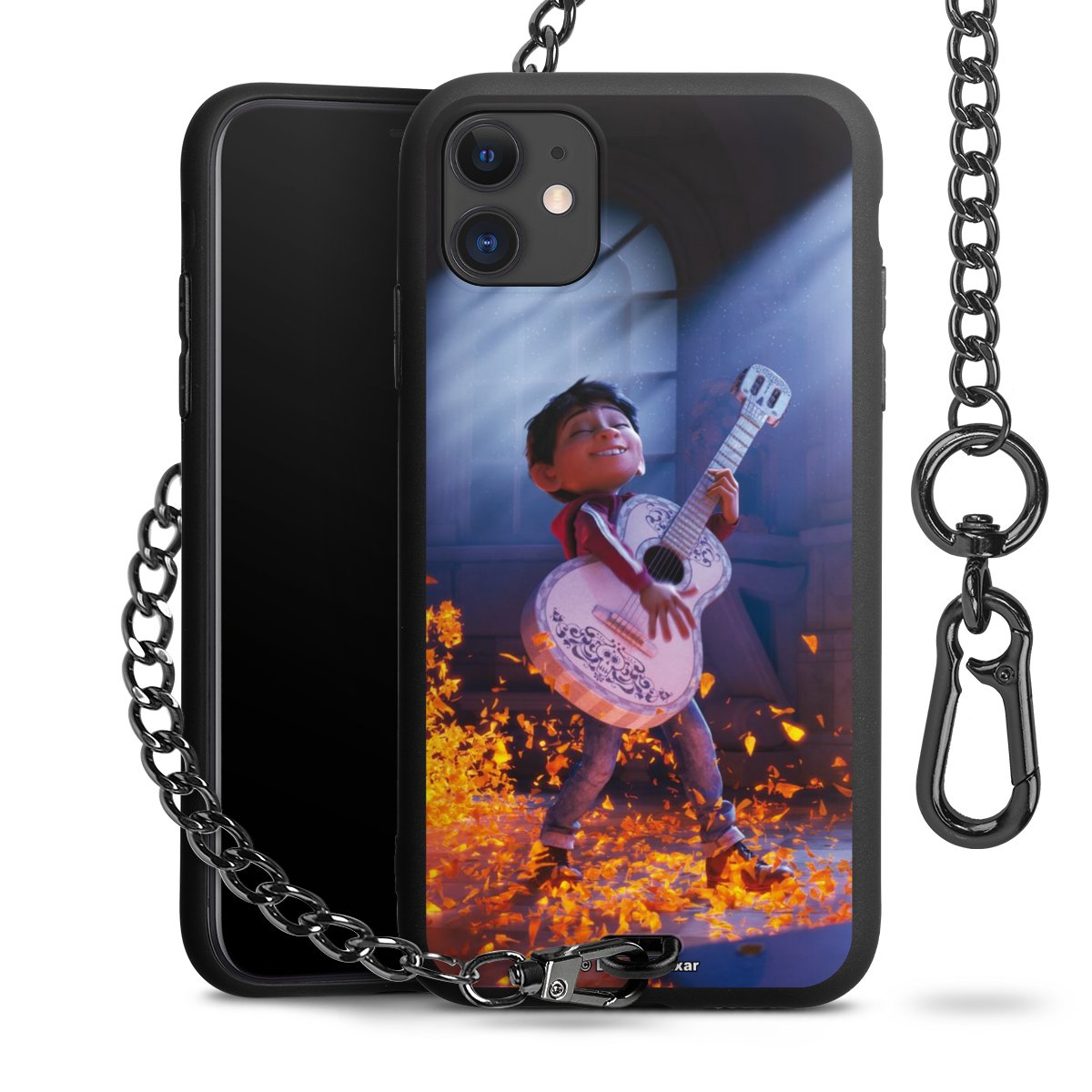 - Mattschwarze Handyhülle mit Metallkette