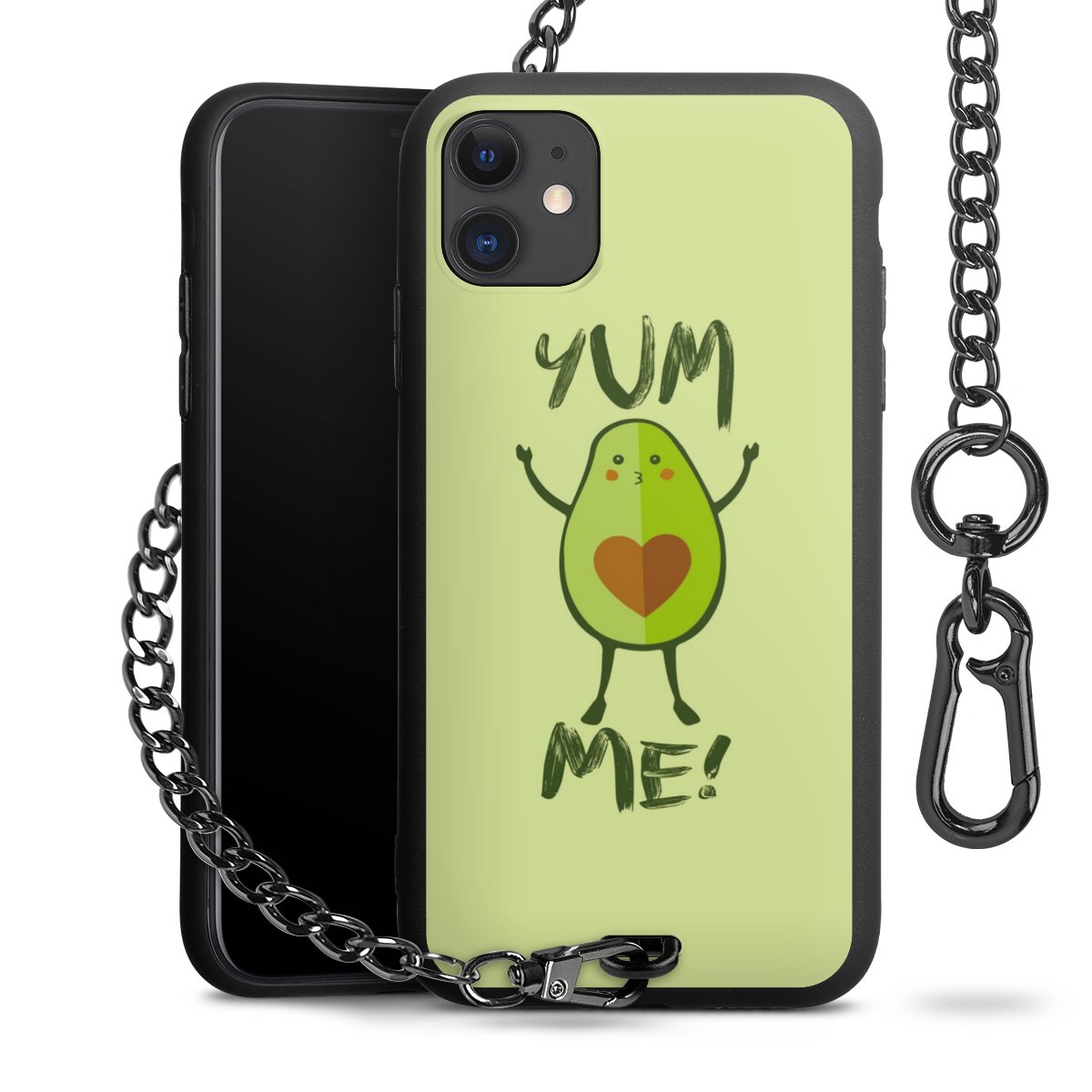 Die mattschwarze Silikon-Handyhülle besteht aus robustem TPU (thermoplastisches Polyurethan). Sie ist flexibel und schützt Dein Smartphone vor Stößen und Kratzern. Die Kette sowie der Karabinerhaken sind aus Metall in Gunmetal-Optik gefertigt. Für dieses Produkt kommen ausschließlich TÜV-geprüfte Materialien zum Einsatz.
