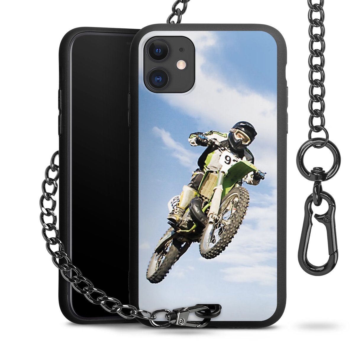 • Mattschwarze Handyhülle mit Metallkette