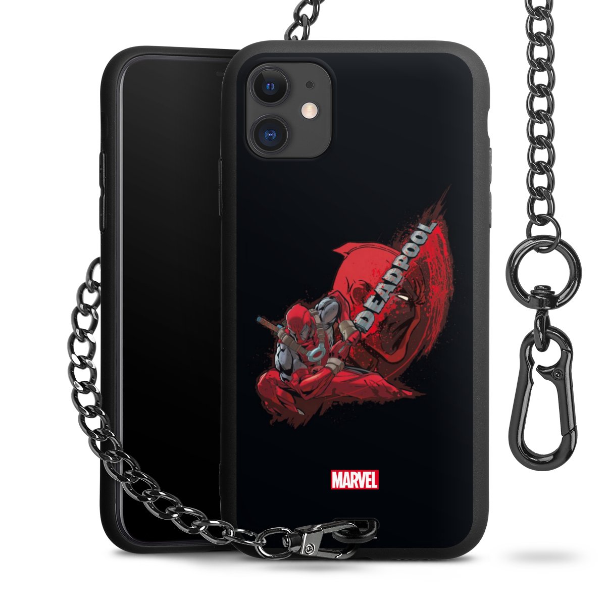 Die mattschwarze Silikon-Handyhülle besteht aus robustem TPU (thermoplastisches Polyurethan). Sie ist flexibel und schützt Dein Smartphone vor Stößen und Kratzern. Die Kette sowie der Karabinerhaken sind aus Metall in Gunmetal-Optik gefertigt. Für dieses Produkt kommen ausschließlich TÜV-geprüfte Materialien zum Einsatz.