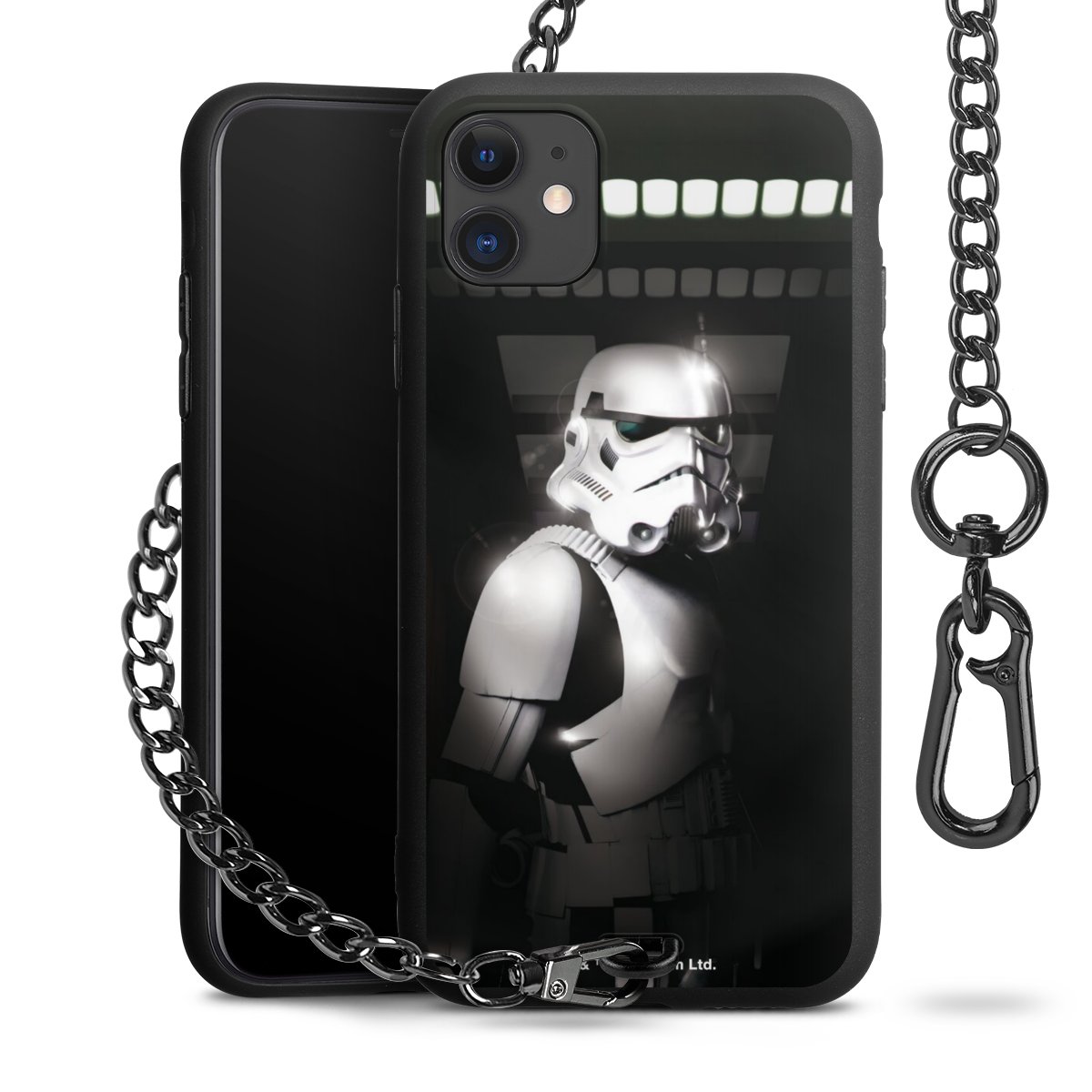 Die mattschwarze Silikon-Handyhülle besteht aus robustem TPU (thermoplastisches Polyurethan). Sie ist flexibel und schützt Dein Smartphone vor Stößen und Kratzern. Die Kette sowie der Karabinerhaken sind aus Metall in Gunmetal-Optik gefertigt. Für dieses Produkt kommen ausschließlich TÜV-geprüfte Materialien zum Einsatz.