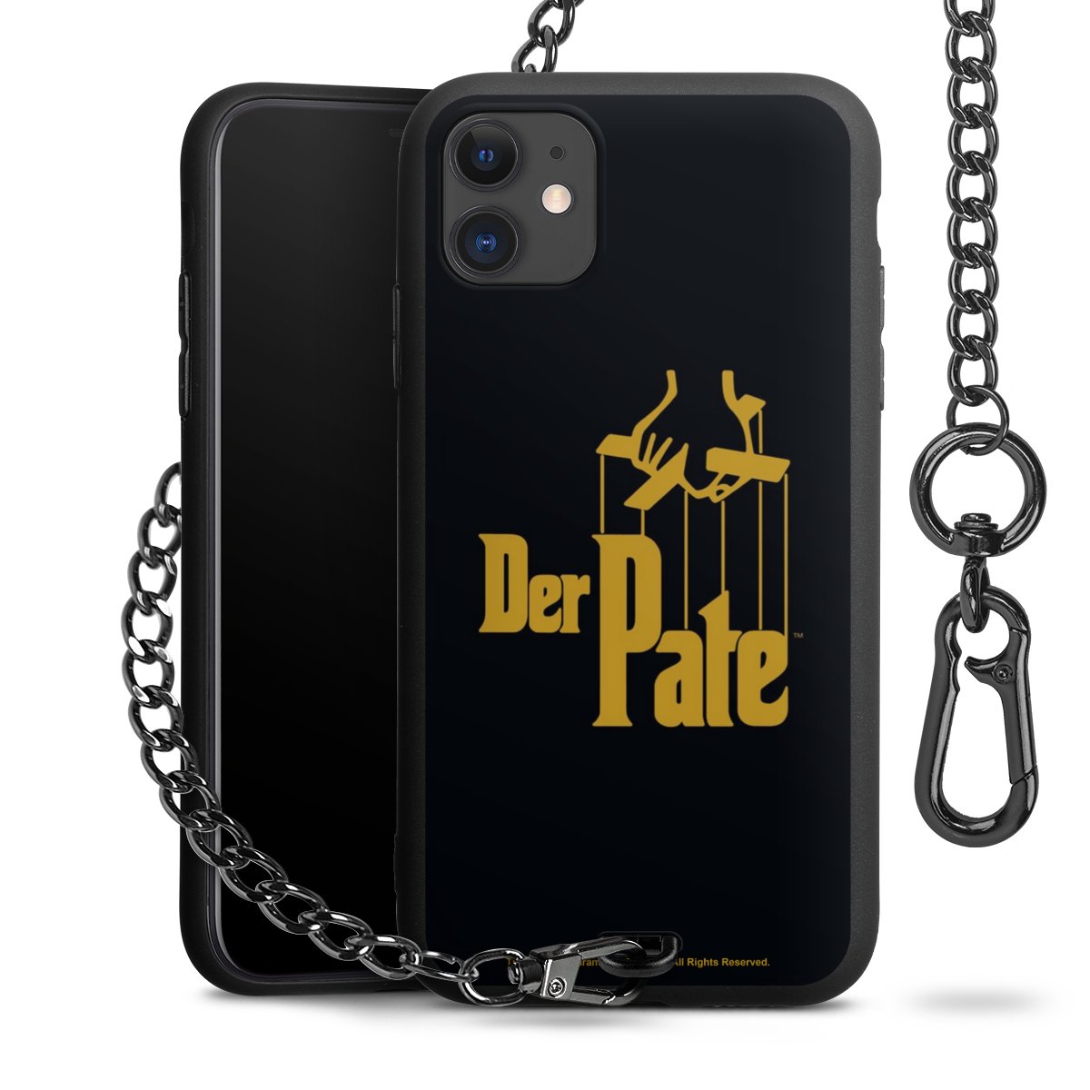Die mattschwarze Silikon-Handyhülle besteht aus robustem TPU (thermoplastisches Polyurethan). Sie ist flexibel und schützt Dein Smartphone vor Stößen und Kratzern. Die Kette sowie der Karabinerhaken sind aus Metall in Gunmetal-Optik gefertigt. Für dieses Produkt kommen ausschließlich TÜV-geprüfte Materialien zum Einsatz.