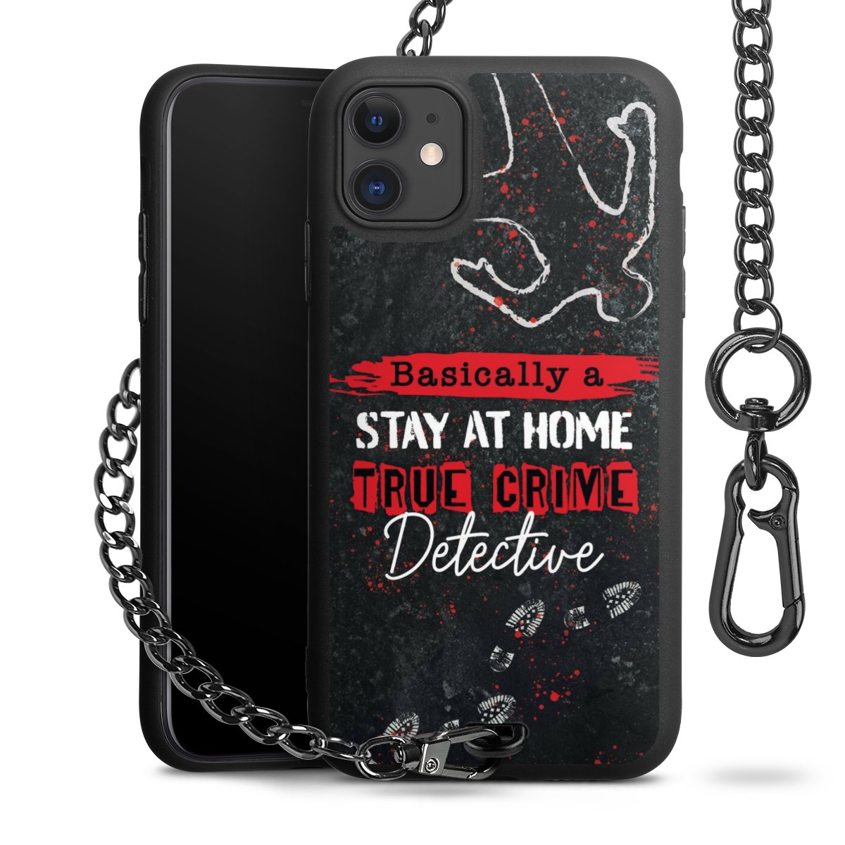 Die mattschwarze Silikon-Handyhülle besteht aus robustem TPU (thermoplastisches Polyurethan). Sie ist flexibel und schützt Dein Smartphone vor Stößen und Kratzern. Die Kette sowie der Karabinerhaken sind aus Metall in Gunmetal-Optik gefertigt. Für dieses Produkt kommen ausschließlich TÜV-geprüfte Materialien zum Einsatz.