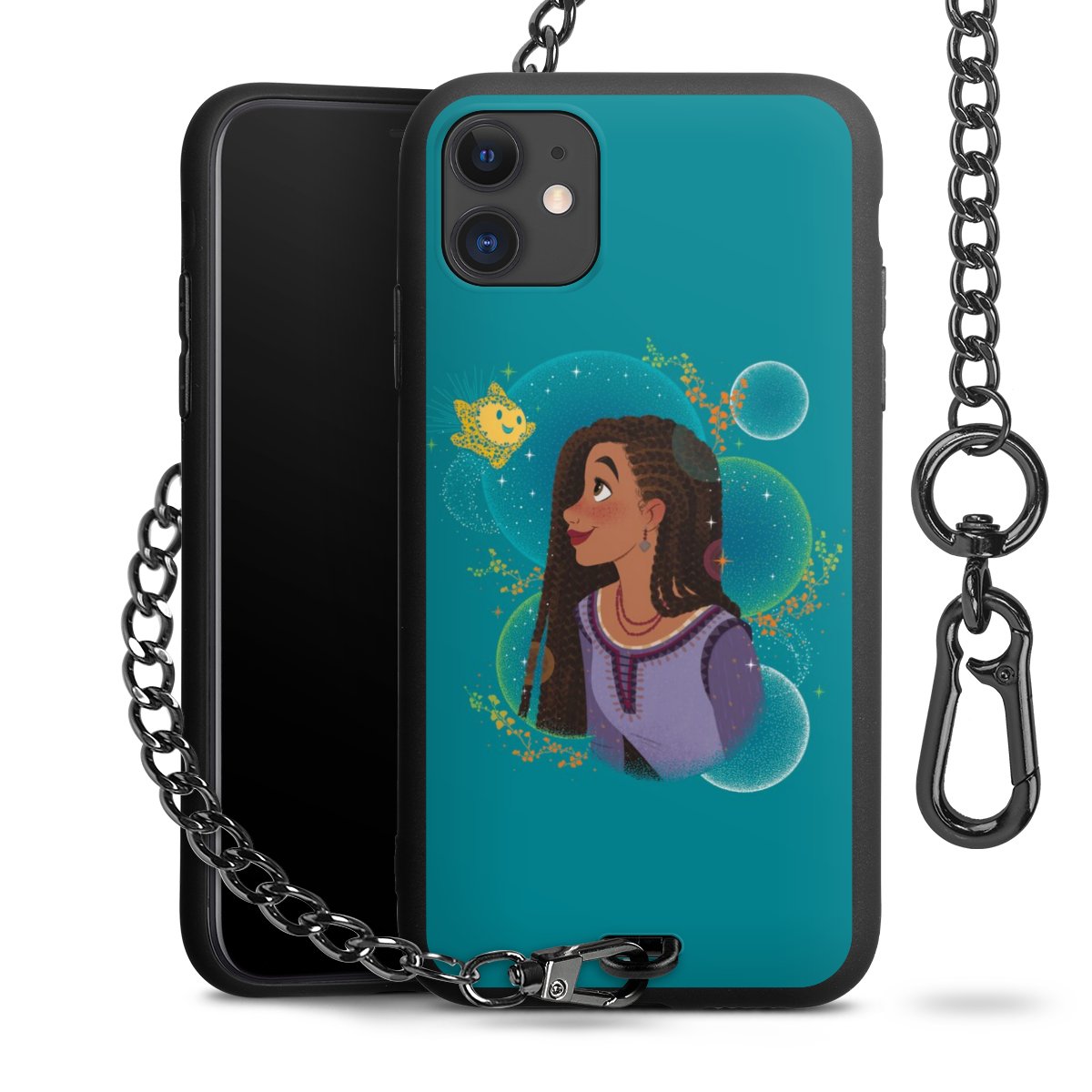 • Mattschwarze Handyhülle mit Metallkette
