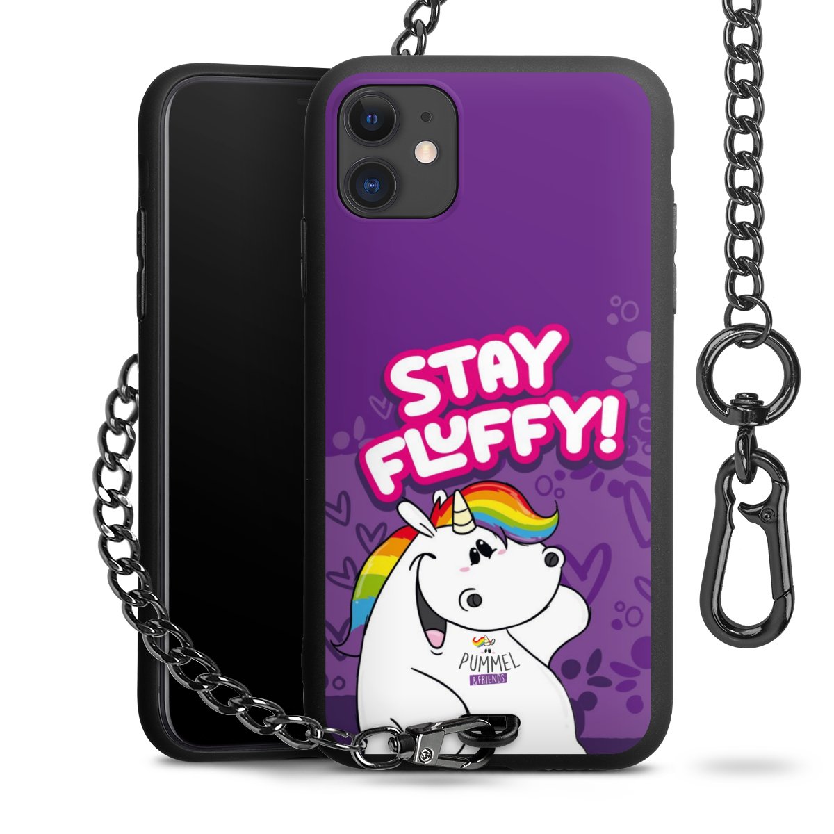 Die mattschwarze Silikon-Handyhülle besteht aus robustem TPU (thermoplastisches Polyurethan). Sie ist flexibel und schützt Dein Smartphone vor Stößen und Kratzern. Die Kette sowie der Karabinerhaken sind aus Metall in Gunmetal-Optik gefertigt. Für dieses Produkt kommen ausschließlich TÜV-geprüfte Materialien zum Einsatz.