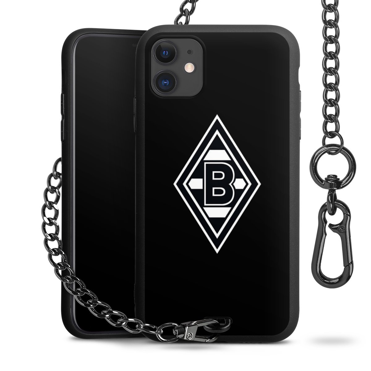 Die mattschwarze Silikon-Handyhülle besteht aus robustem TPU (thermoplastisches Polyurethan). Sie ist flexibel und schützt Dein Smartphone vor Stößen und Kratzern. Die Kette sowie der Karabinerhaken sind aus Metall in Gunmetal-Optik gefertigt. Für dieses Produkt kommen ausschließlich TÜV-geprüfte Materialien zum Einsatz.