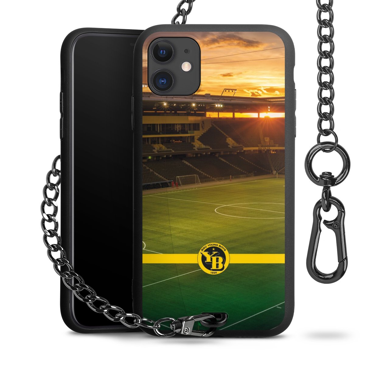 Die mattschwarze Silikon-Handyhülle besteht aus robustem TPU (thermoplastisches Polyurethan). Sie ist flexibel und schützt Dein Smartphone vor Stößen und Kratzern. Die Kette sowie der Karabinerhaken sind aus Metall in Gunmetal-Optik gefertigt. Für dieses Produkt kommen ausschließlich TÜV-geprüfte Materialien zum Einsatz.