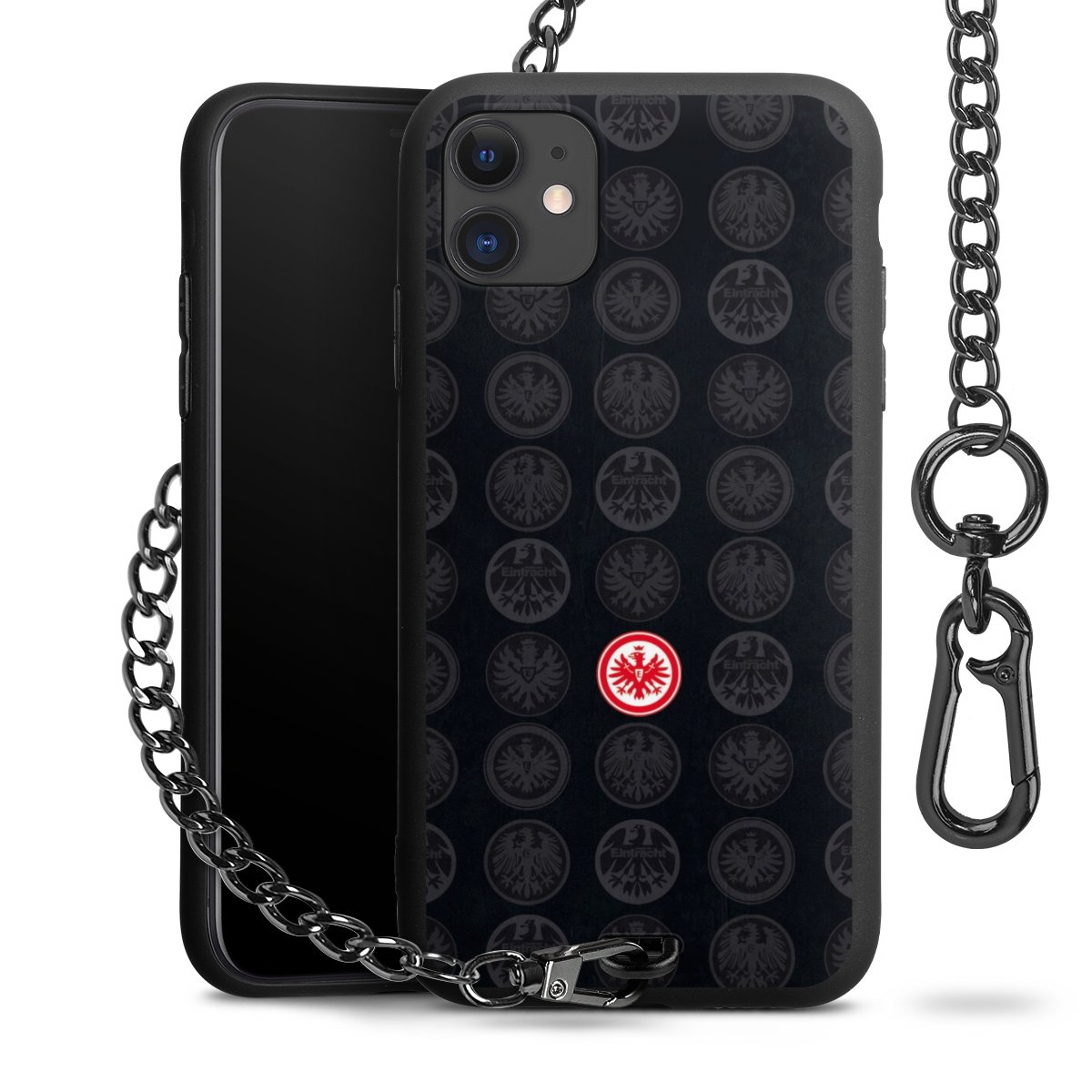 • Mattschwarze Handyhülle mit Metallkette