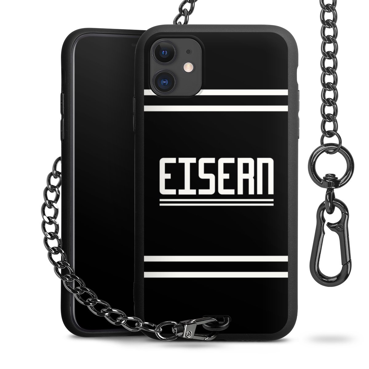 • Mattschwarze Handyhülle mit Metallkette
