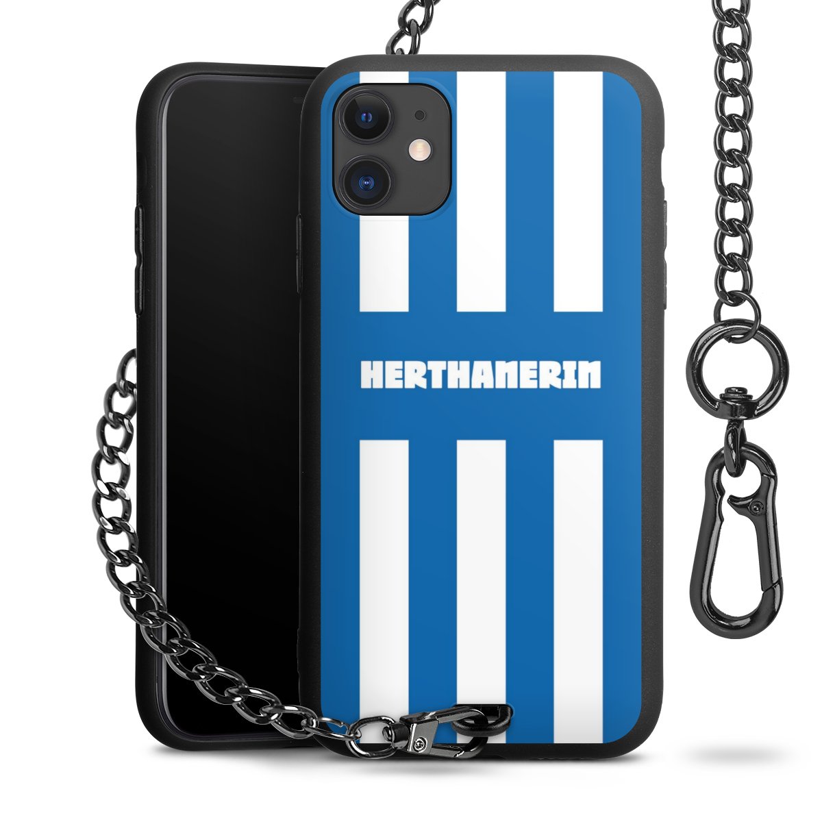Die mattschwarze Silikon-Handyhülle besteht aus robustem TPU (thermoplastisches Polyurethan). Sie ist flexibel und schützt Dein Smartphone vor Stößen und Kratzern. Die Kette sowie der Karabinerhaken sind aus Metall in Gunmetal-Optik gefertigt. Für dieses Produkt kommen ausschließlich TÜV-geprüfte Materialien zum Einsatz.