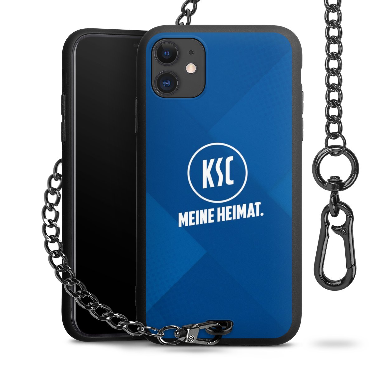 Die mattschwarze Silikon-Handyhülle besteht aus robustem TPU (thermoplastisches Polyurethan). Sie ist flexibel und schützt Dein Smartphone vor Stößen und Kratzern. Die Kette sowie der Karabinerhaken sind aus Metall in Gunmetal-Optik gefertigt. Für dieses Produkt kommen ausschließlich TÜV-geprüfte Materialien zum Einsatz.