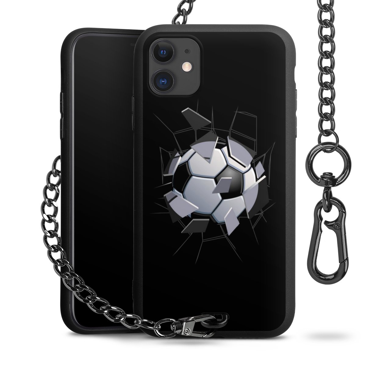 - Mattschwarze Handyhülle mit Metallkette