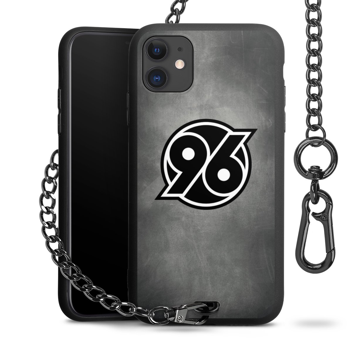 Die mattschwarze Silikon-Handyhülle besteht aus robustem TPU (thermoplastisches Polyurethan). Sie ist flexibel und schützt Dein Smartphone vor Stößen und Kratzern. Die Kette sowie der Karabinerhaken sind aus Metall in Gunmetal-Optik gefertigt. Für dieses Produkt kommen ausschließlich TÜV-geprüfte Materialien zum Einsatz.