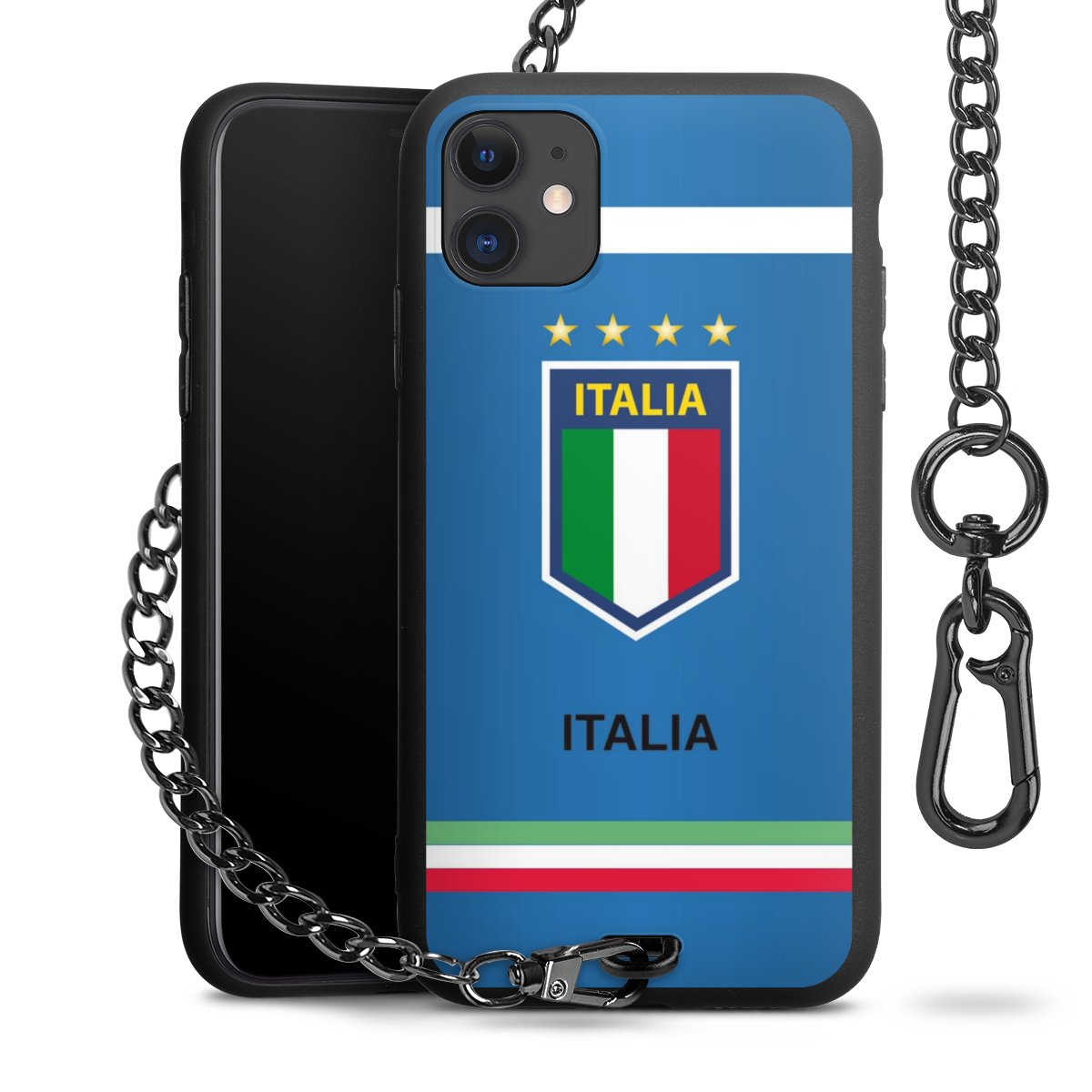 - Mattschwarze Handyhülle mit Metallkette