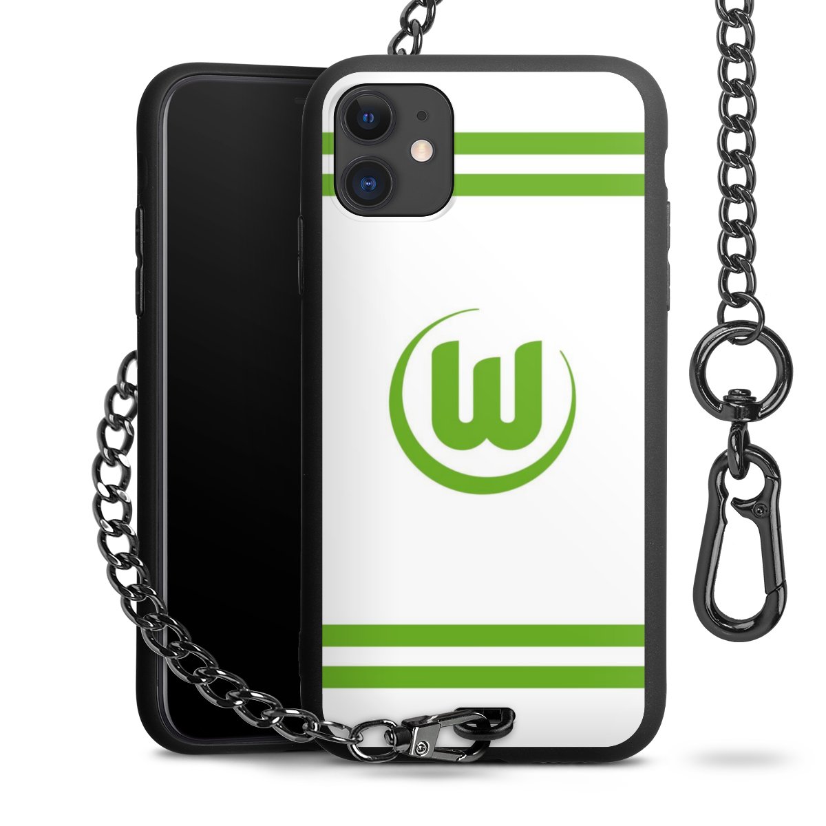 Die mattschwarze Silikon-Handyhülle besteht aus robustem TPU (thermoplastisches Polyurethan). Sie ist flexibel und schützt Dein Smartphone vor Stößen und Kratzern. Die Kette sowie der Karabinerhaken sind aus Metall in Gunmetal-Optik gefertigt. Für dieses Produkt kommen ausschließlich TÜV-geprüfte Materialien zum Einsatz.