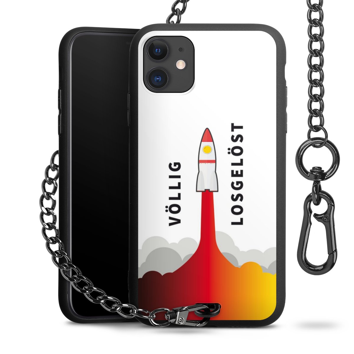 Die mattschwarze Silikon-Handyhülle besteht aus robustem TPU (thermoplastisches Polyurethan). Sie ist flexibel und schützt Dein Smartphone vor Stößen und Kratzern. Die Kette sowie der Karabinerhaken sind aus Metall in Gunmetal-Optik gefertigt. Für dieses Produkt kommen ausschließlich TÜV-geprüfte Materialien zum Einsatz.