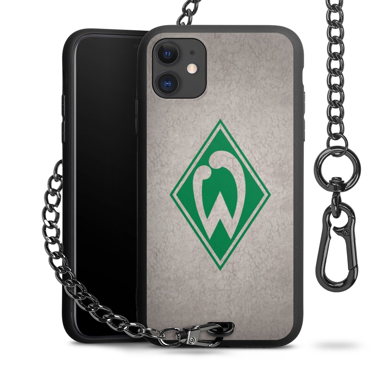 Die mattschwarze Silikon-Handyhülle besteht aus robustem TPU (thermoplastisches Polyurethan). Sie ist flexibel und schützt Dein Smartphone vor Stößen und Kratzern. Die Kette sowie der Karabinerhaken sind aus Metall in Gunmetal-Optik gefertigt. Für dieses Produkt kommen ausschließlich TÜV-geprüfte Materialien zum Einsatz.