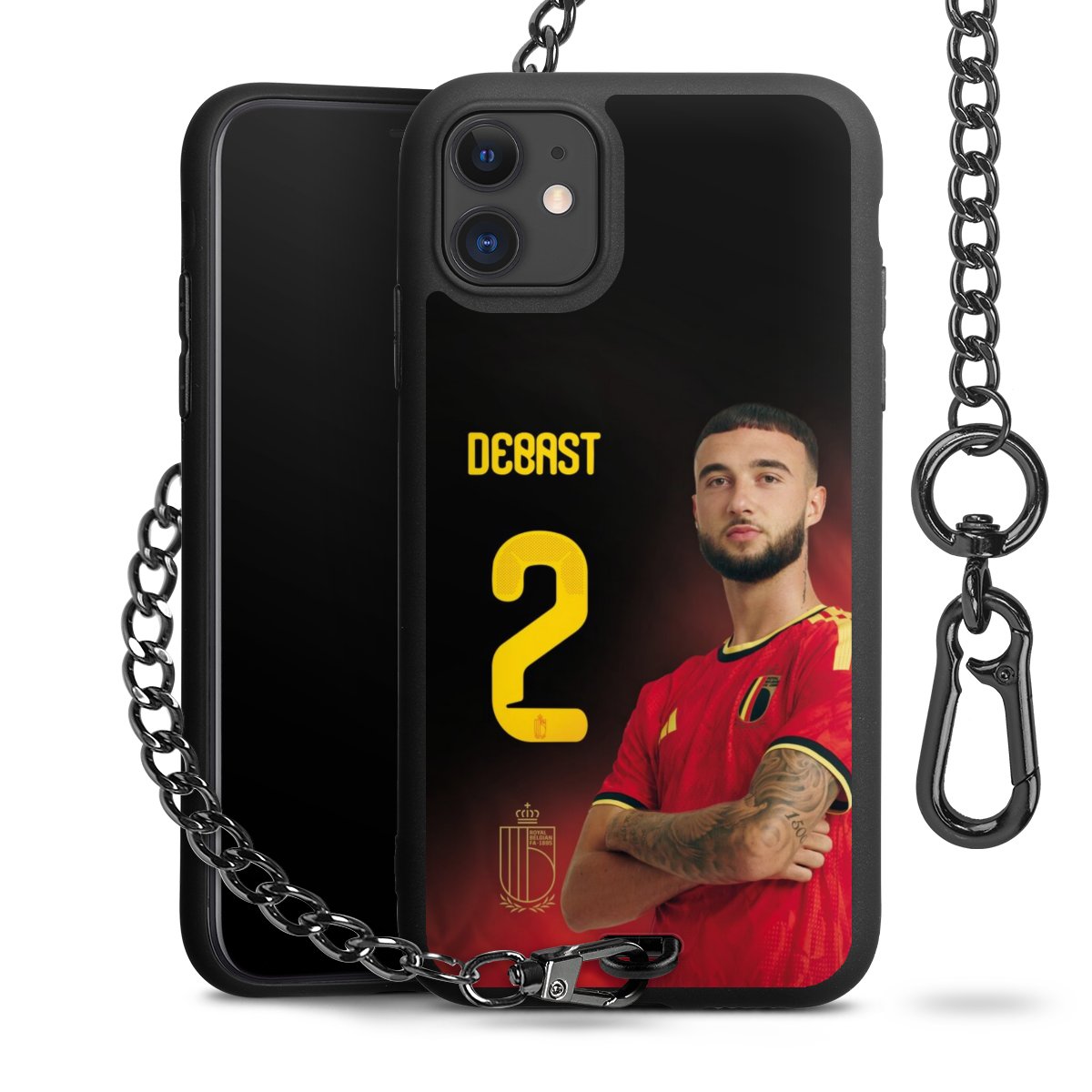 Ob im Alltag, beim Feiern mit Deinen Jungs oder auf Festivals – mit dem superpraktischen Belt Case steckst Du alle Sorgen um Diebstahl und Spider-App ganz entspannt in die Tasche. Es besteht aus einem coolen mattschwarzen Silikon Premium Case, dem Du ein individuelles Design verpassen kannst, und einer daran befestigten Kette in lässiger Gunmetal-Optik. Mit dem Karabiner auf der anderen Seite klickst Du die Kette mit einem Handgriff an Deine Gürtelschlaufe und schon ist Dein Smartphone sicher und stets griffbereit in der Hosentasche verstaut.