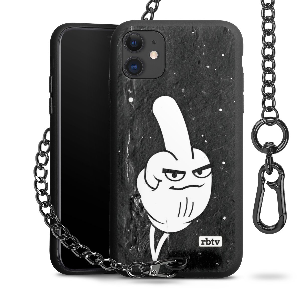 Die mattschwarze Silikon-Handyhülle besteht aus robustem TPU (thermoplastisches Polyurethan). Sie ist flexibel und schützt Dein Smartphone vor Stößen und Kratzern. Die Kette sowie der Karabinerhaken sind aus Metall in Gunmetal-Optik gefertigt. Für dieses Produkt kommen ausschließlich TÜV-geprüfte Materialien zum Einsatz.