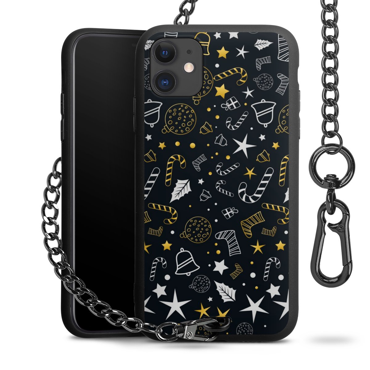 - Mattschwarze Handyhülle mit Metallkette