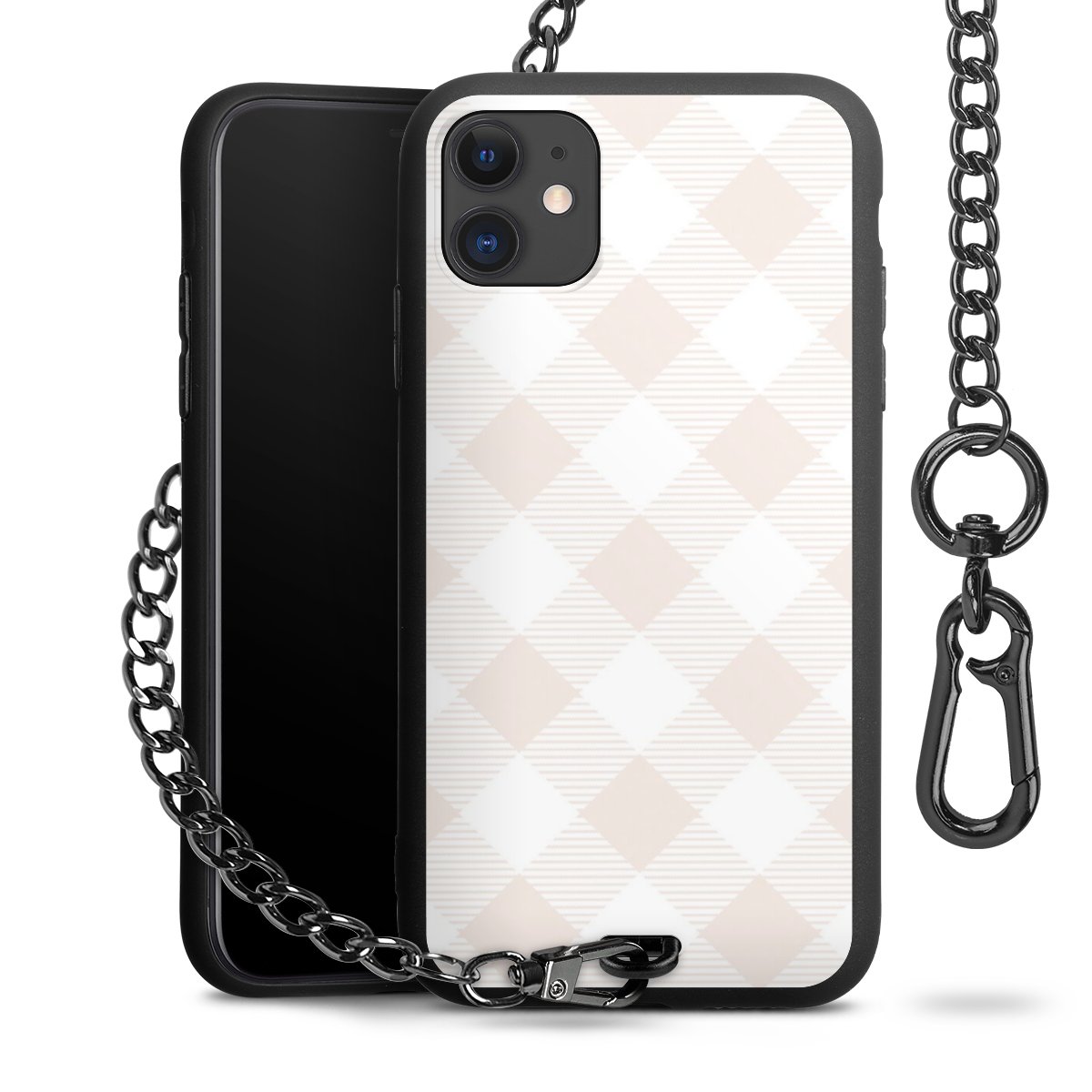Die mattschwarze Silikon-Handyhülle besteht aus robustem TPU (thermoplastisches Polyurethan). Sie ist flexibel und schützt Dein Smartphone vor Stößen und Kratzern. Die Kette sowie der Karabinerhaken sind aus Metall in Gunmetal-Optik gefertigt. Für dieses Produkt kommen ausschließlich TÜV-geprüfte Materialien zum Einsatz.